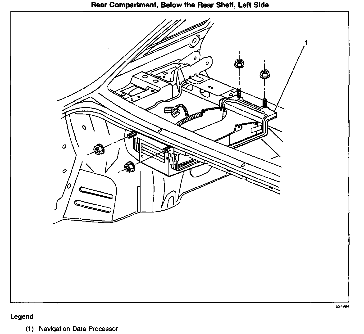 In the rear compartment, under the rear shelf, mounted to the rear shelf carrier