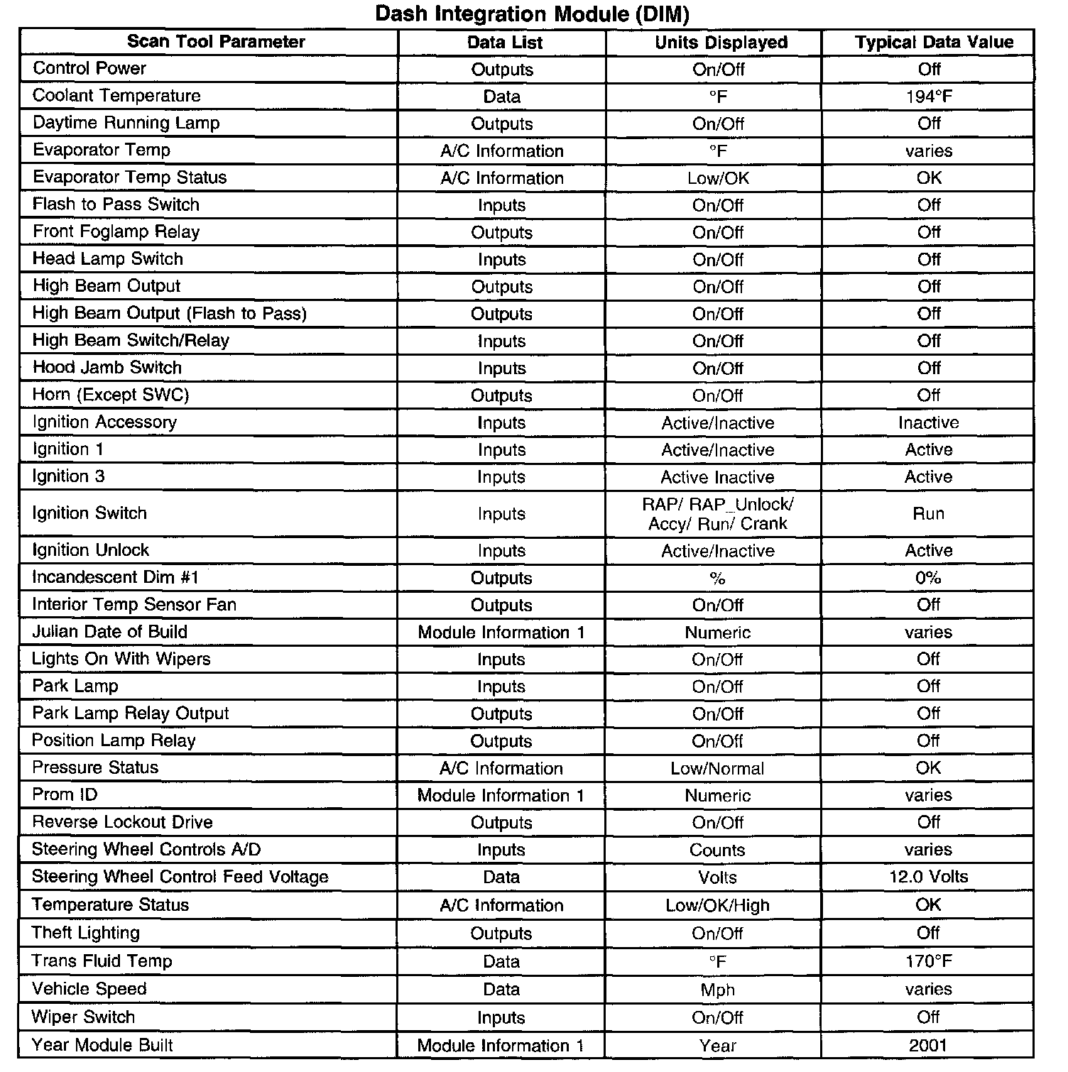 Scan Tool Data List
