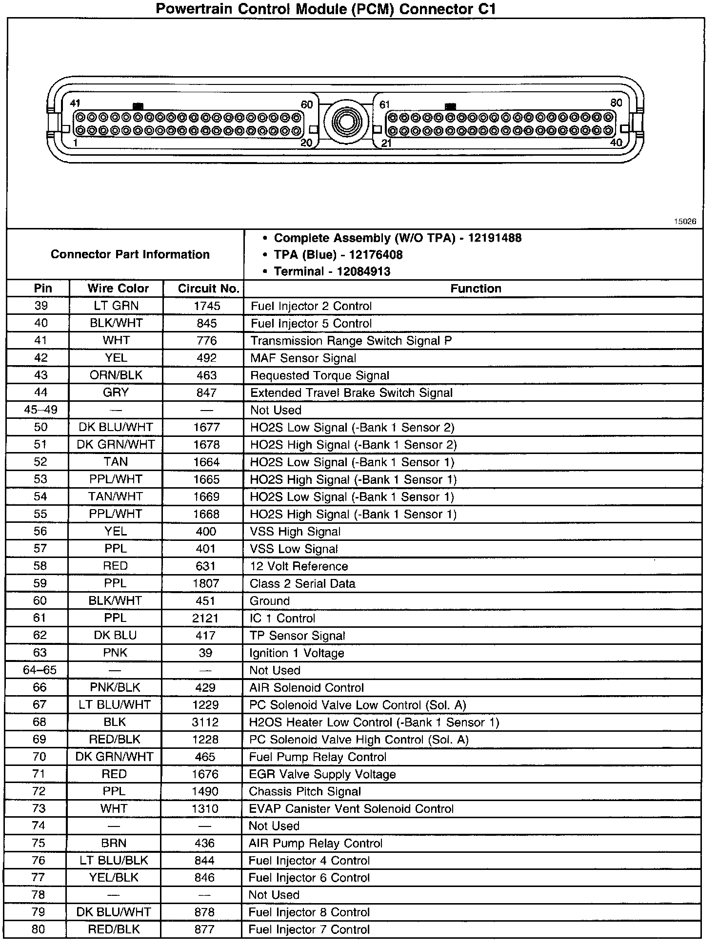 Powertrain Control Module (PCM) Connector C1 (Part 2 Of 2):