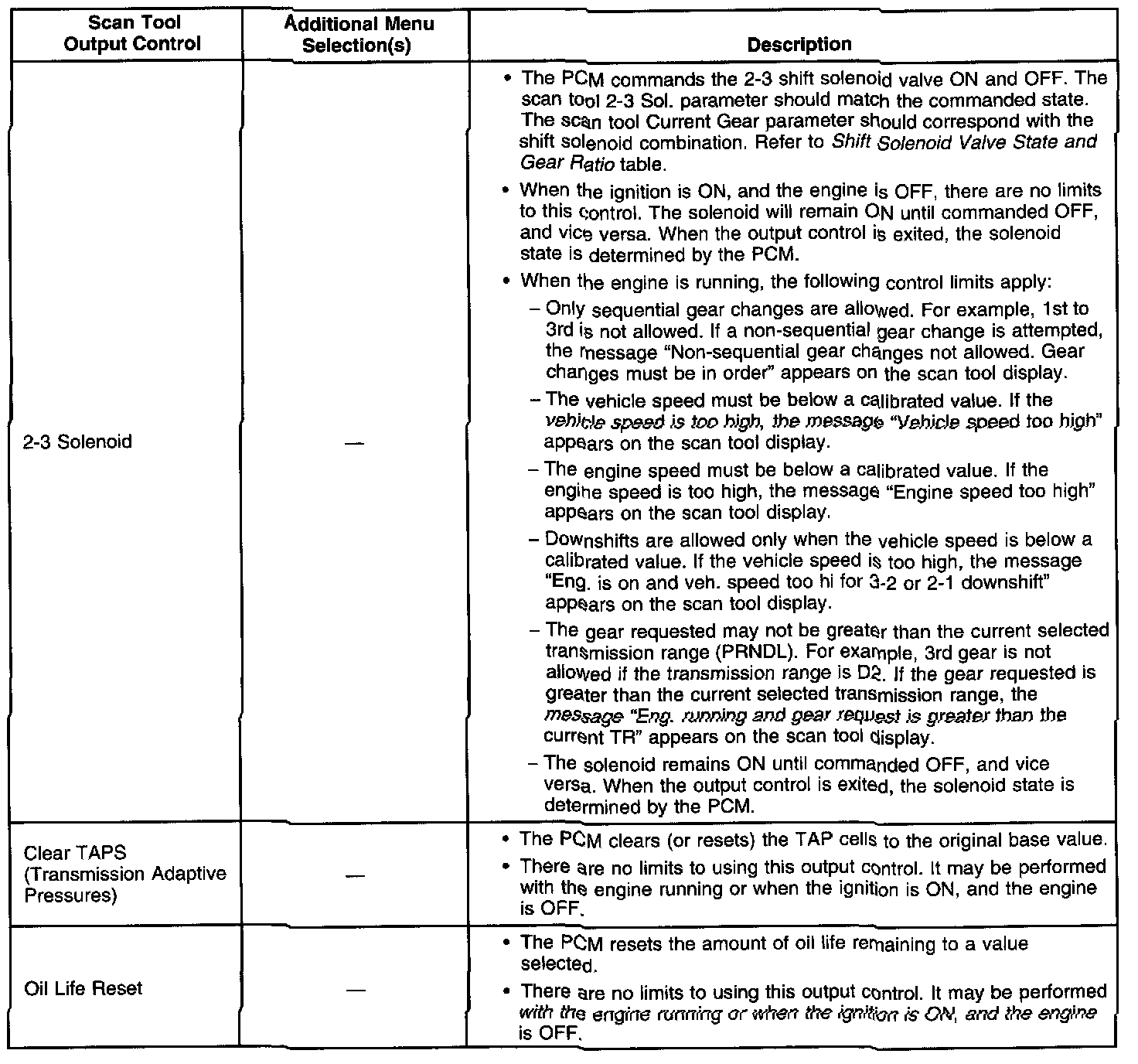 Scan Tool Output Controls