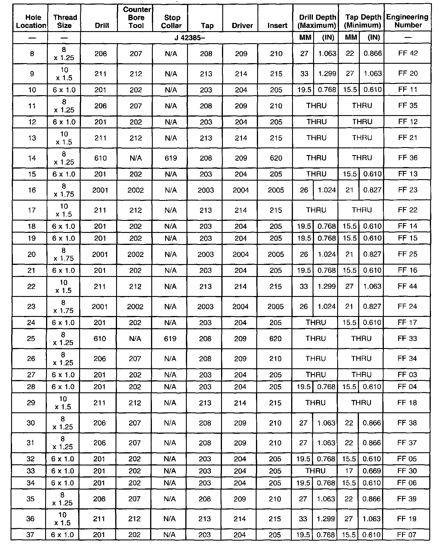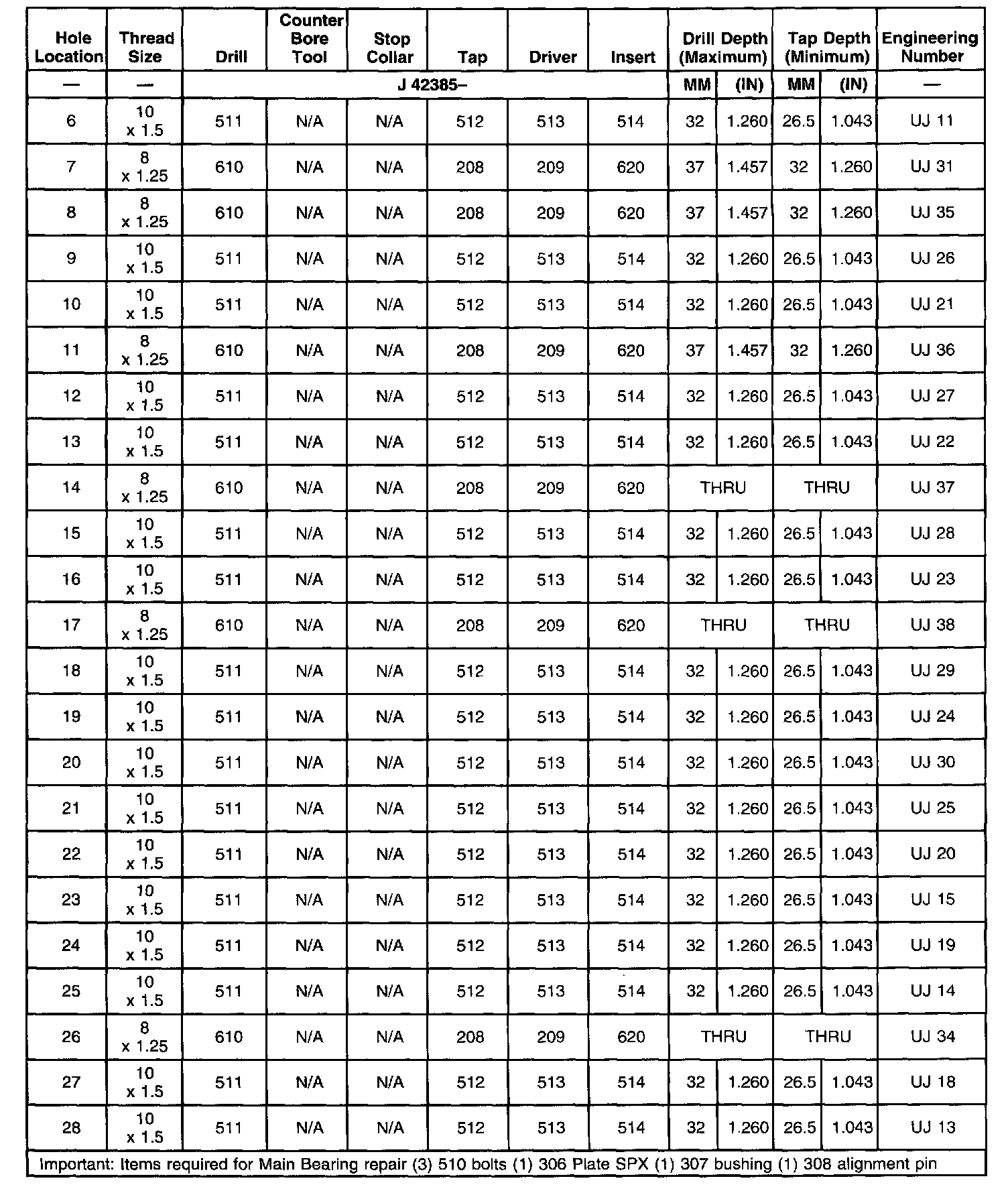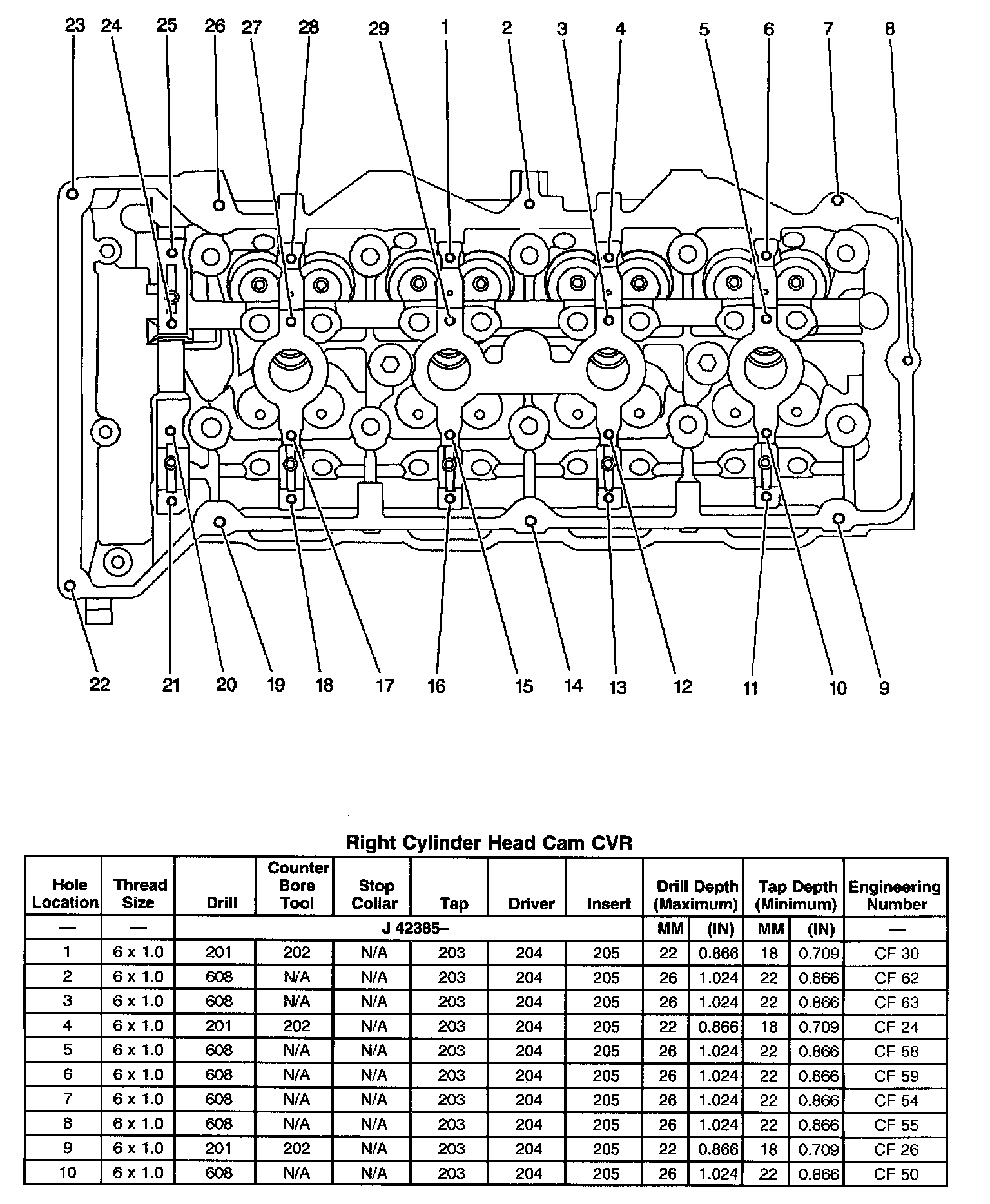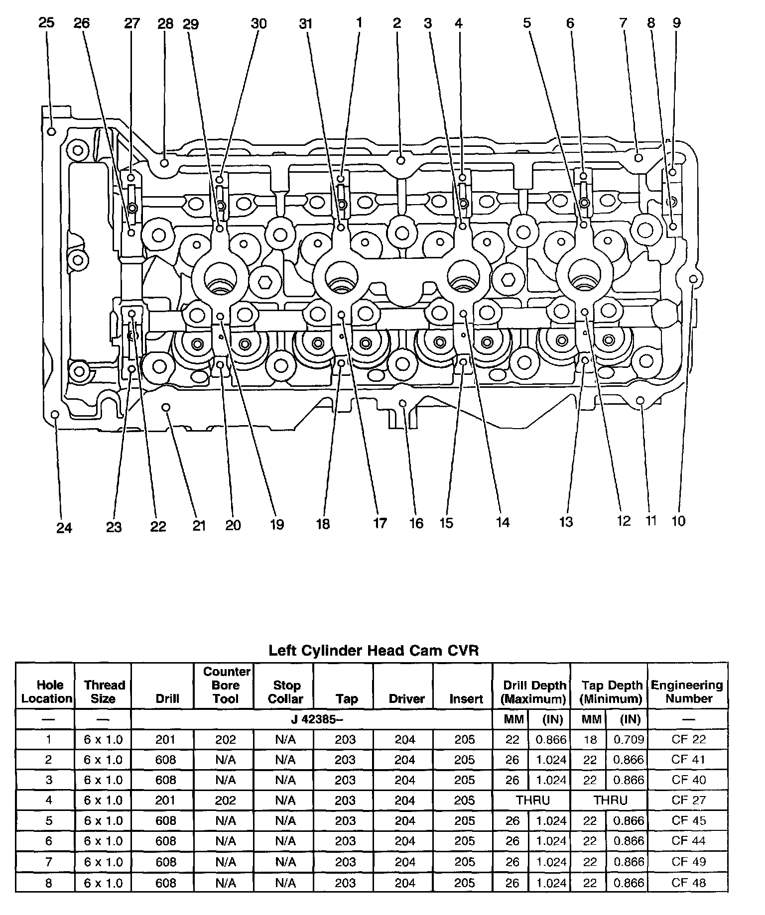 Thread Repair SpecificationsLeft Cylinder Head Cam CVR