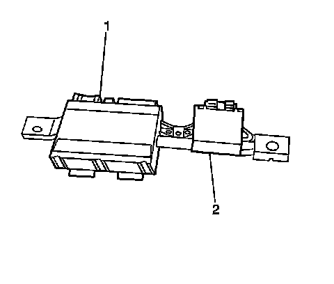 2. Disconnect the electrical connectors from the heated seat control module (2) and the memory seat module (1).