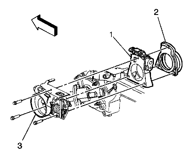 3. Install the throttle body assembly (2).