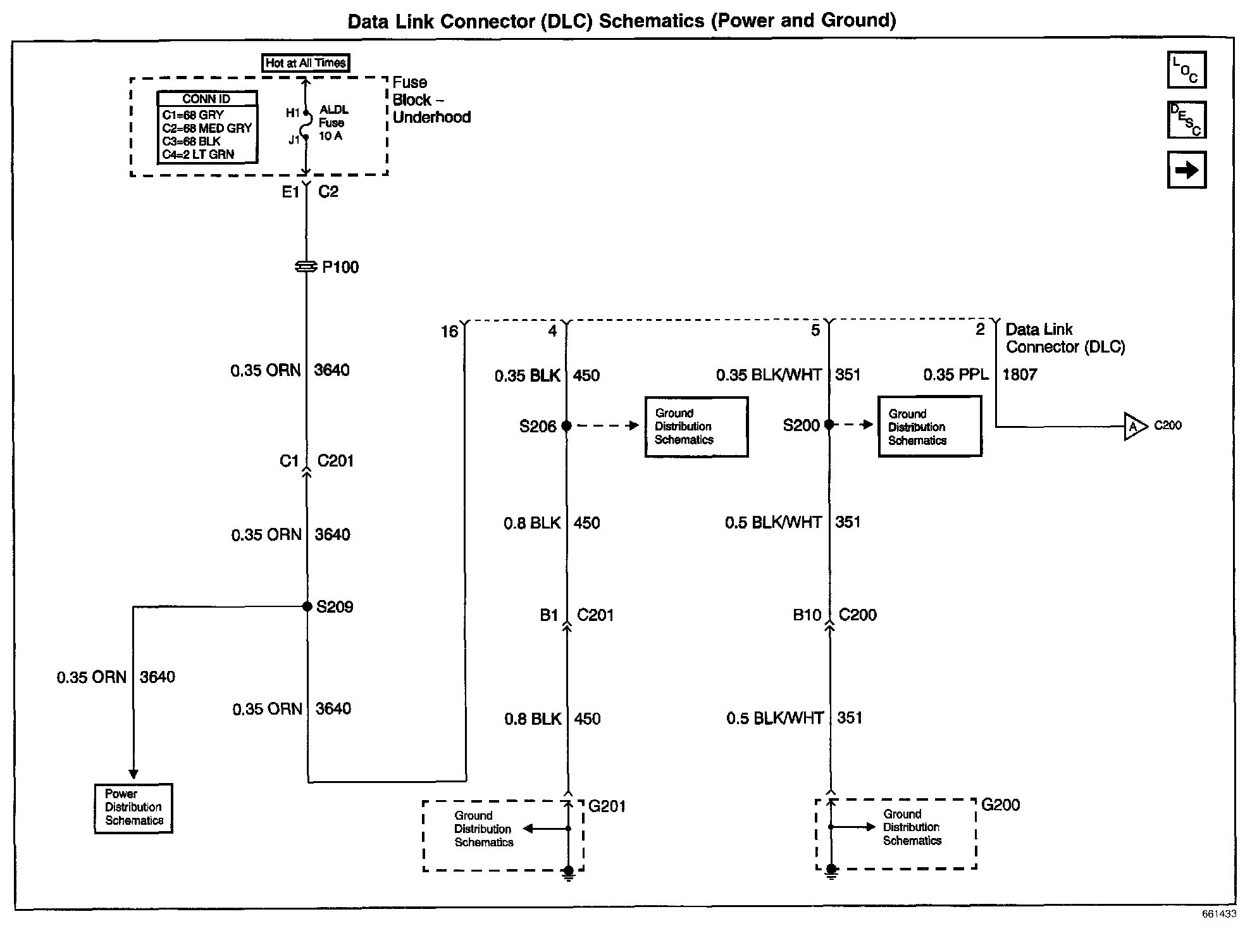 Data Link Connector (DLC) Schematics: Power And Ground:
