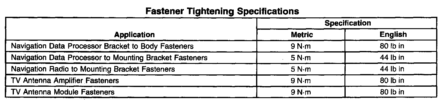 Fastener Tightening Specifications: