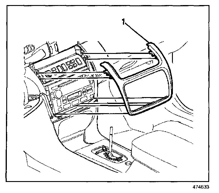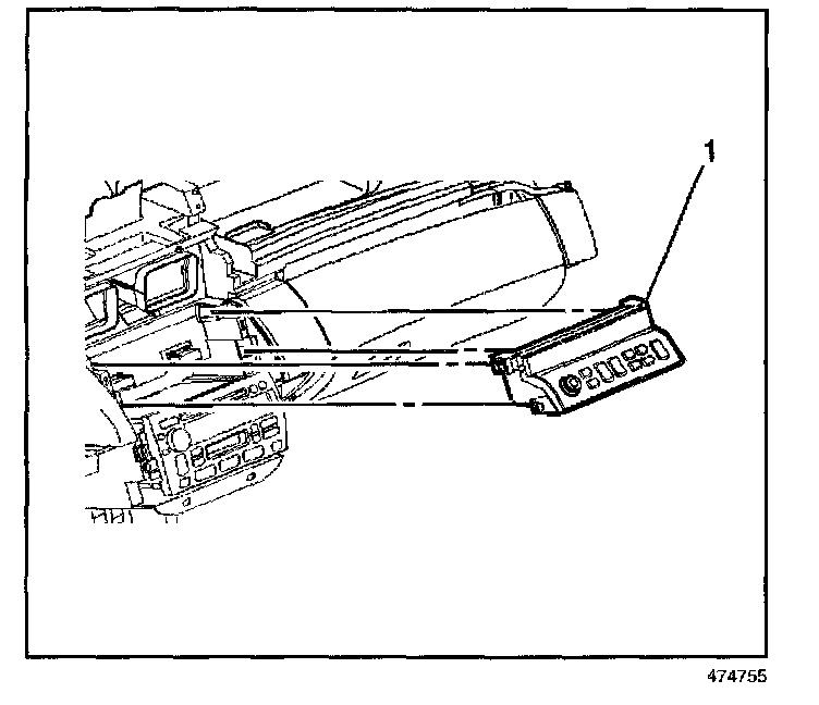 1. Remove the instrument panel center trim plate (1). Refer to Trim Panel Replacement - IP Center in Instrument Panel, Gauges, and Console.