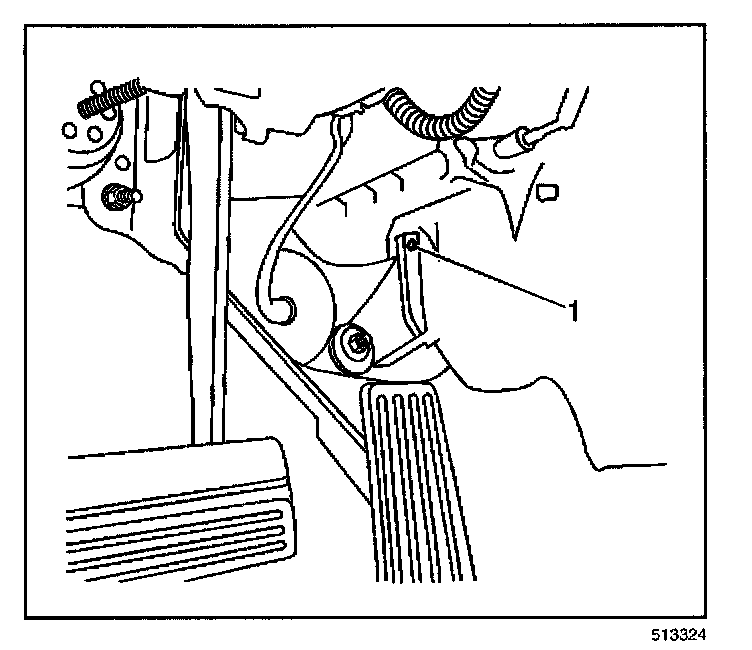 4. Drill an 1/8 inch hole (1) in the HVAC module at the recessed area above the gas pedal as shown.