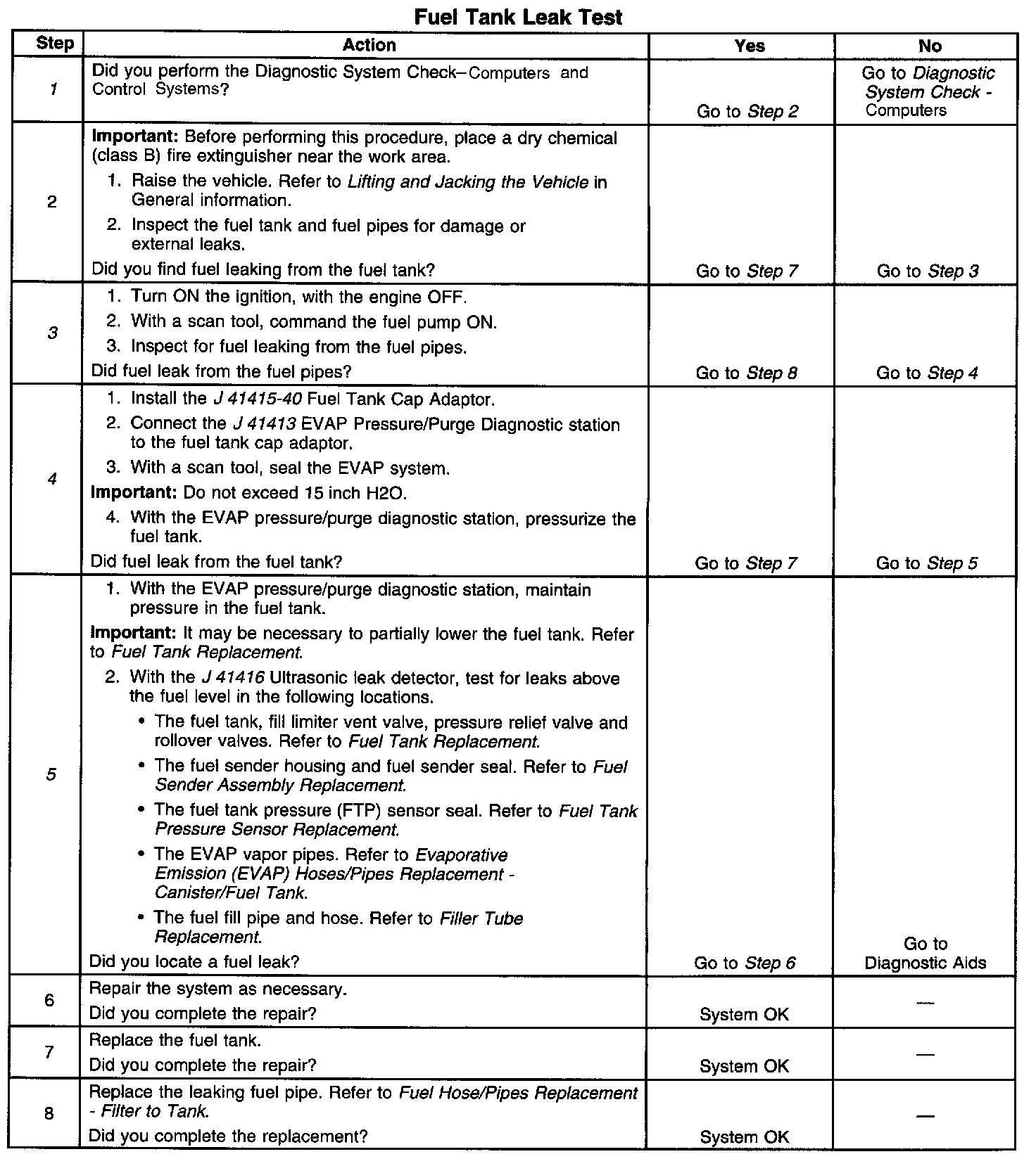 ^ Test for fuel vapor leaks in the following locations: