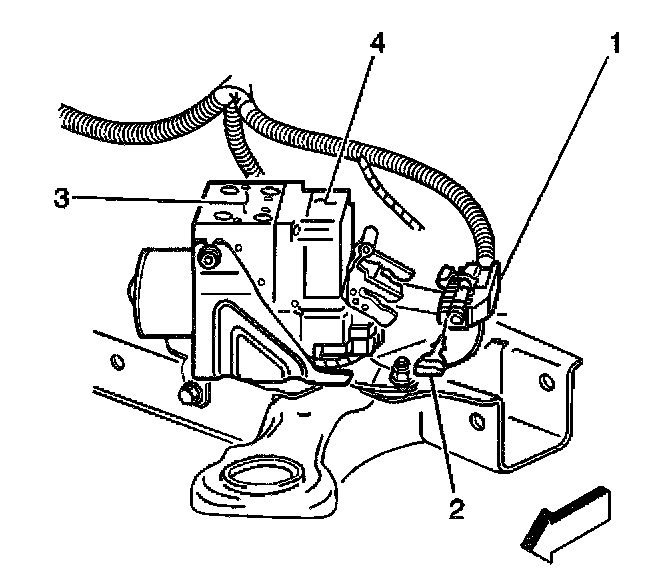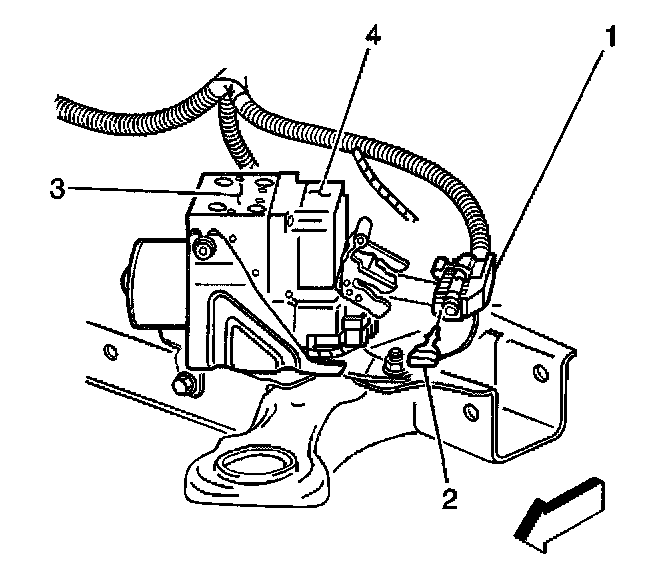 8. Disconnect the EBCM electrical connector (1) from the EBCM (4).