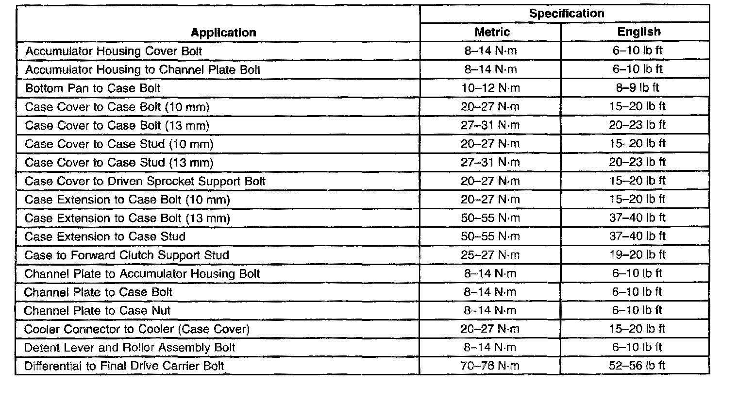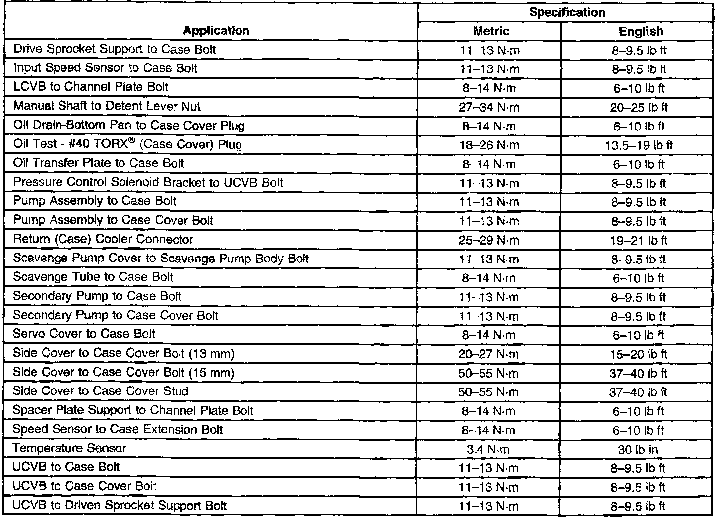 Fastener Tightening Specifications