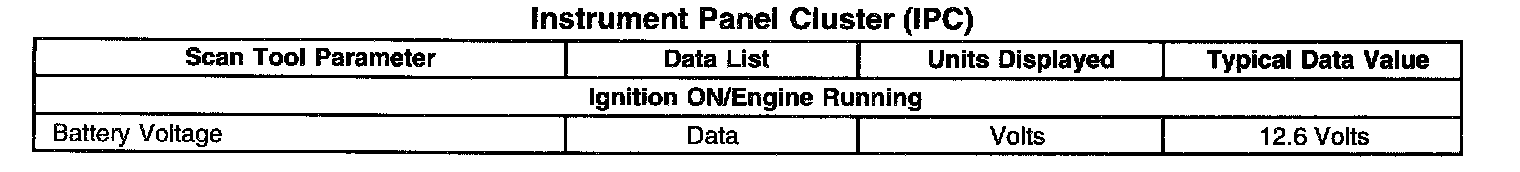Scan Tool Data List - Instrument Panel Cluster (IPC)