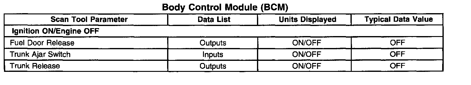 Scan Tool Data List - Body Control Module (BCM)