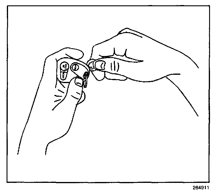 1. Insert a small coin between the 2 halves of the transmitter case at the slot provided near the key ring hole.