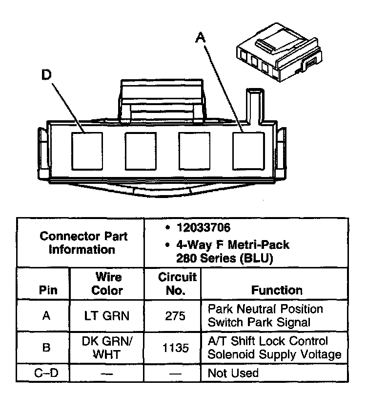 Shift Lock Control Connector End Views