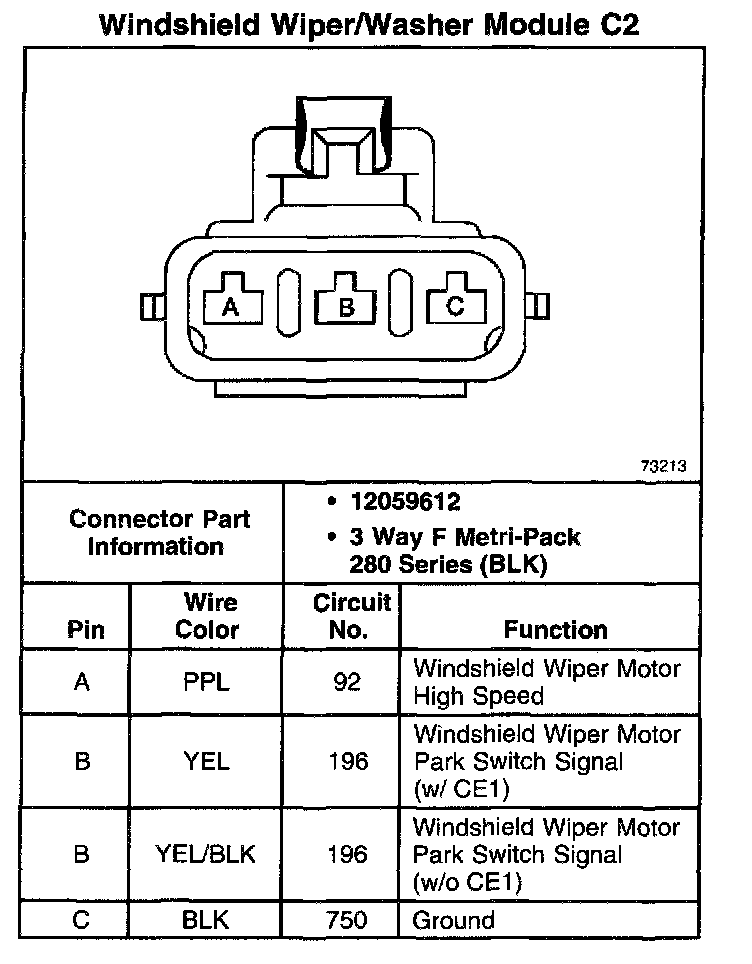 Windshield Wiper/Washer Module C2: