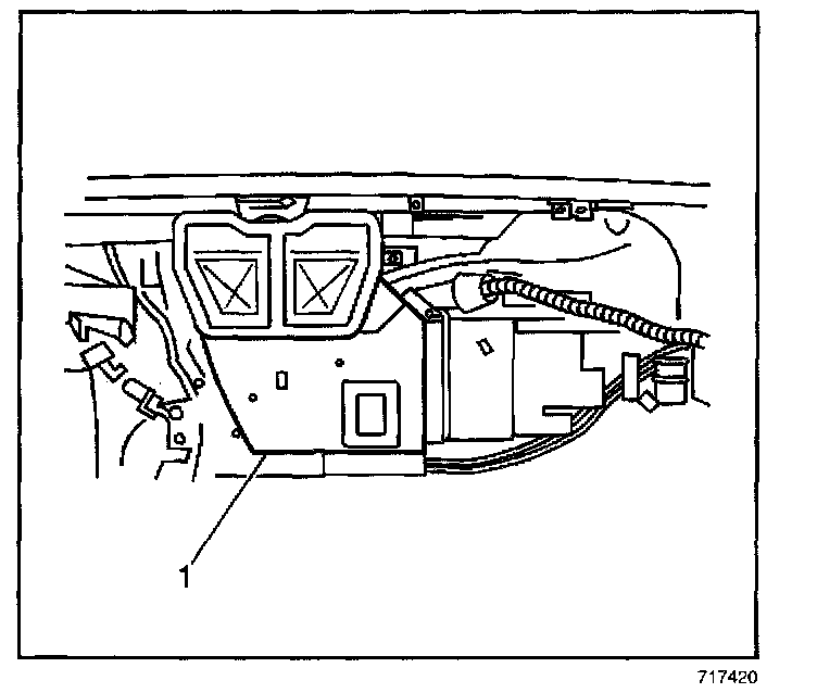 4. Install the fasteners (1) into the defroster duct.