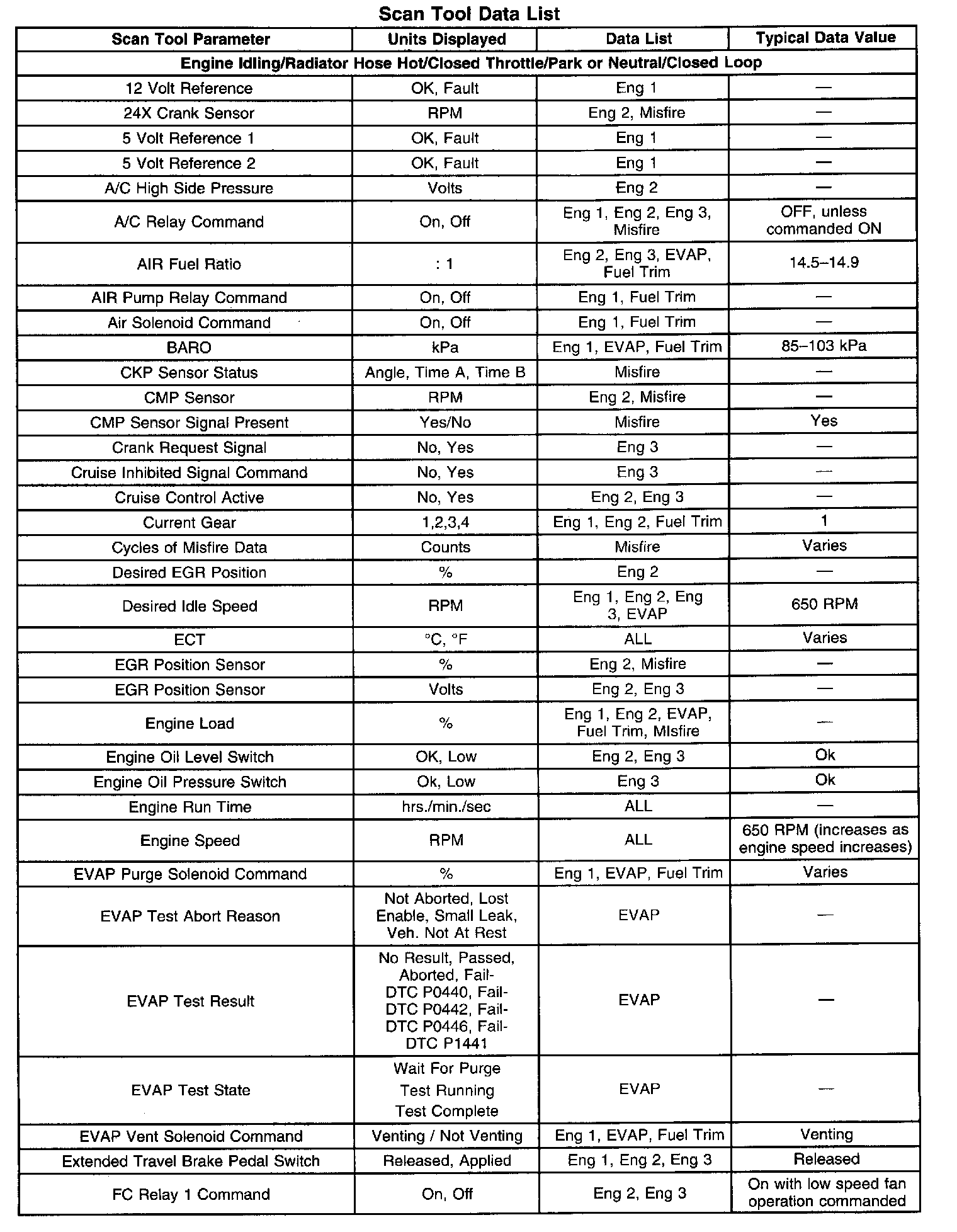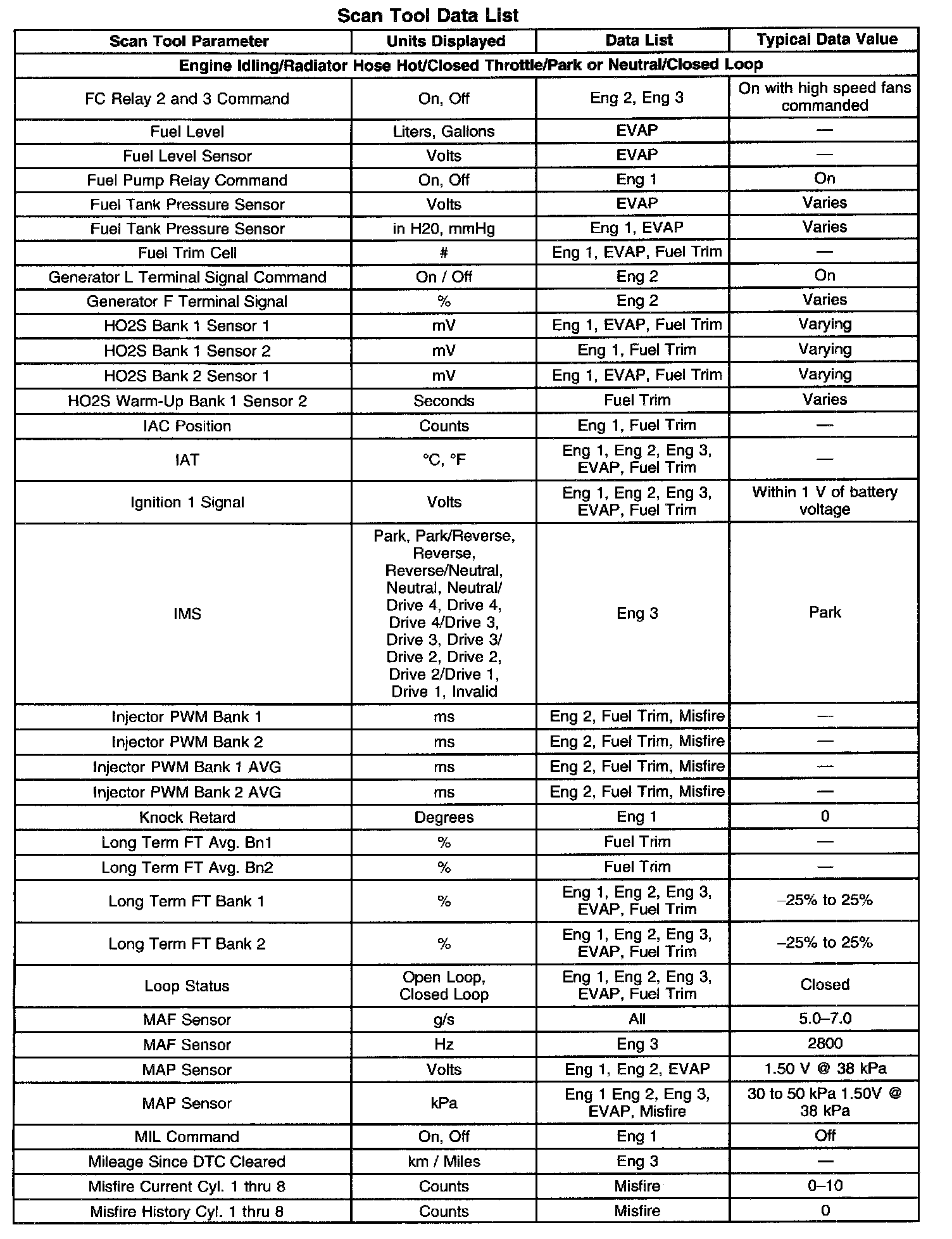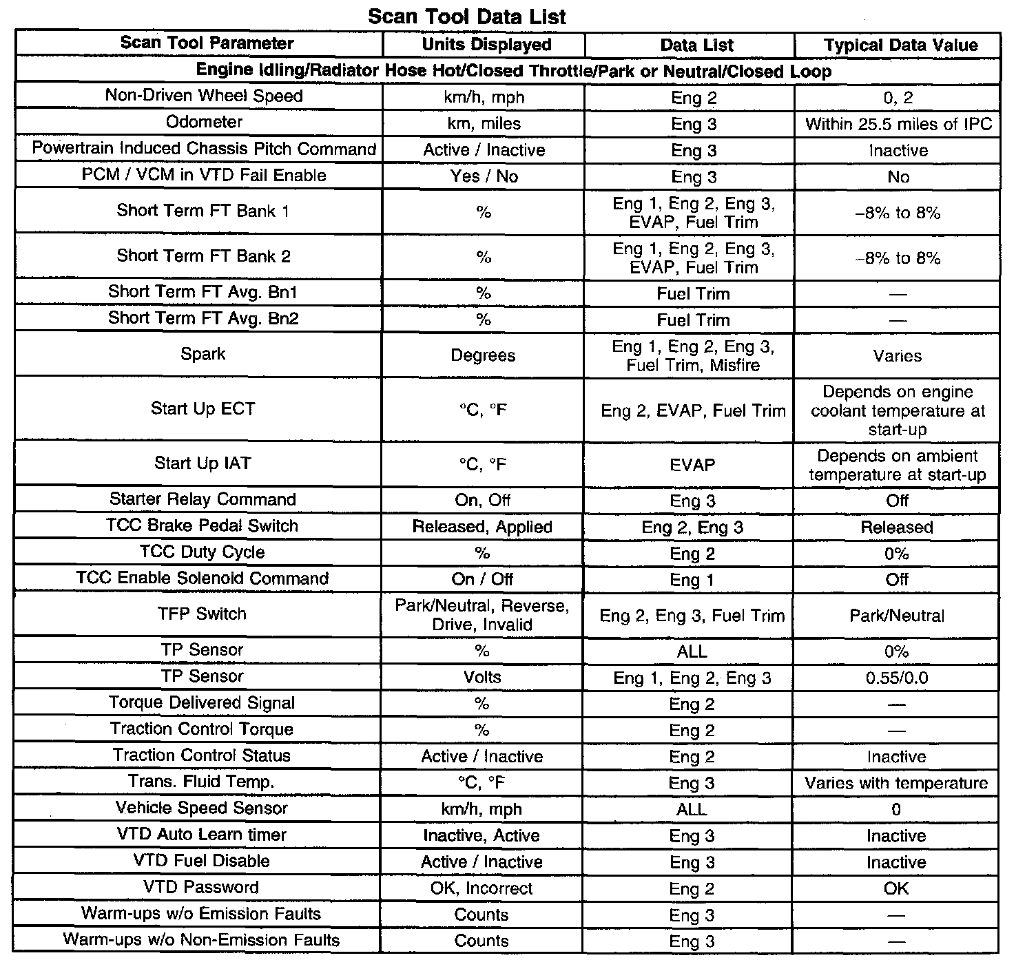 Scan Tool Data, Normal Values and Definitions