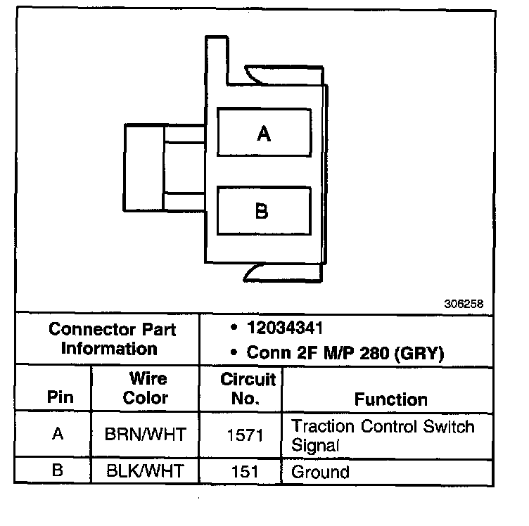Traction Control Switch Connector, Wiring Harness Side