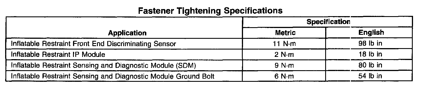 Fastener Tightening Specifications: