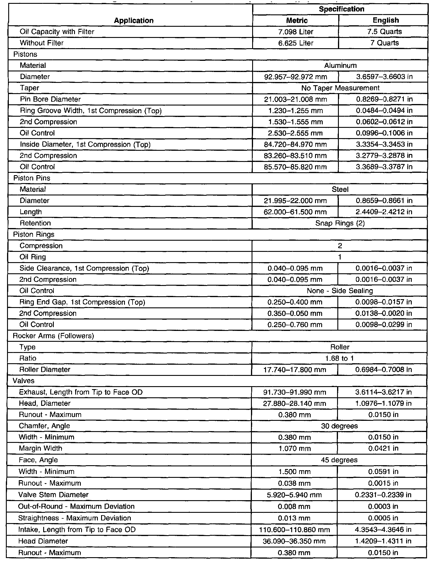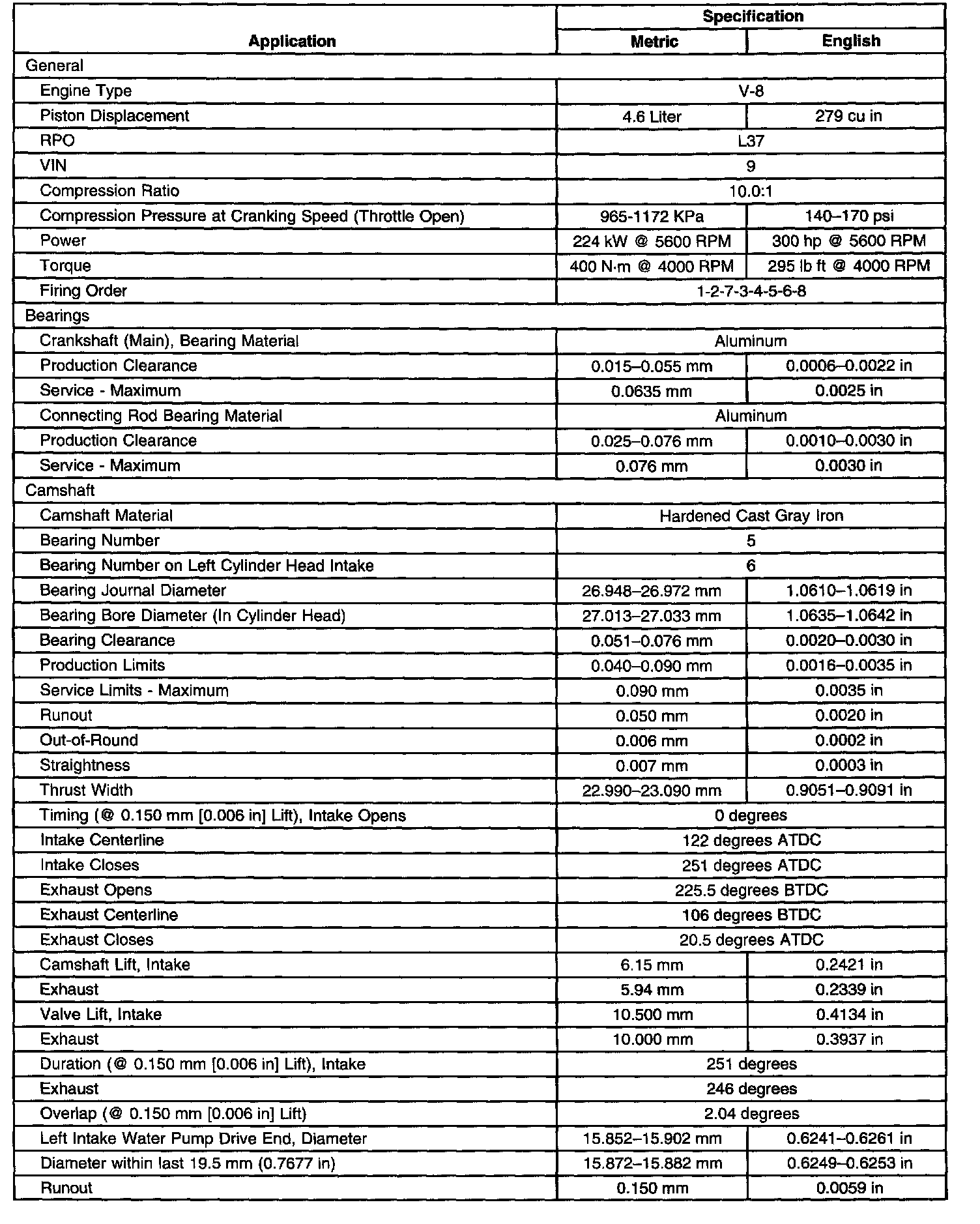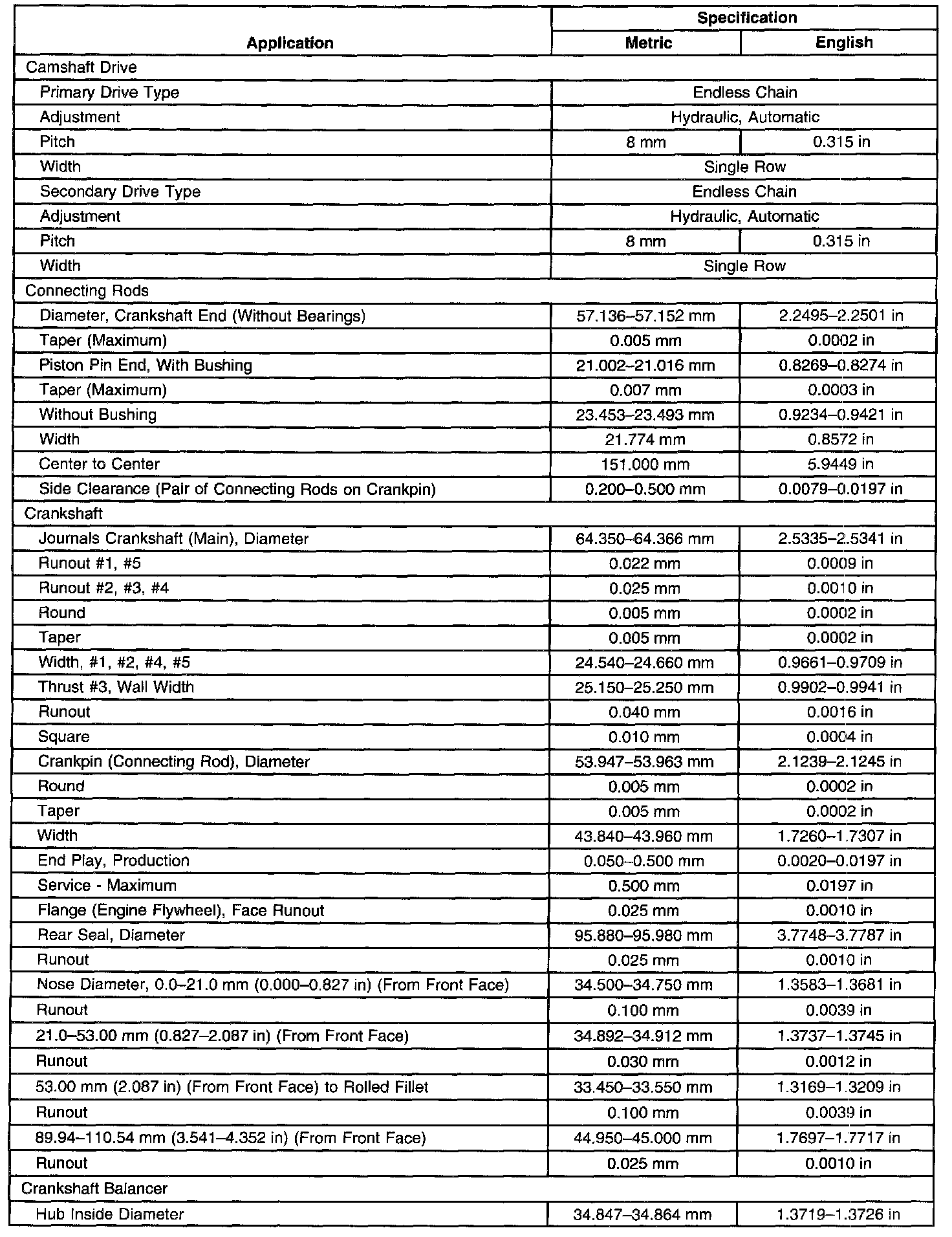 Engine Mechanical Specifications