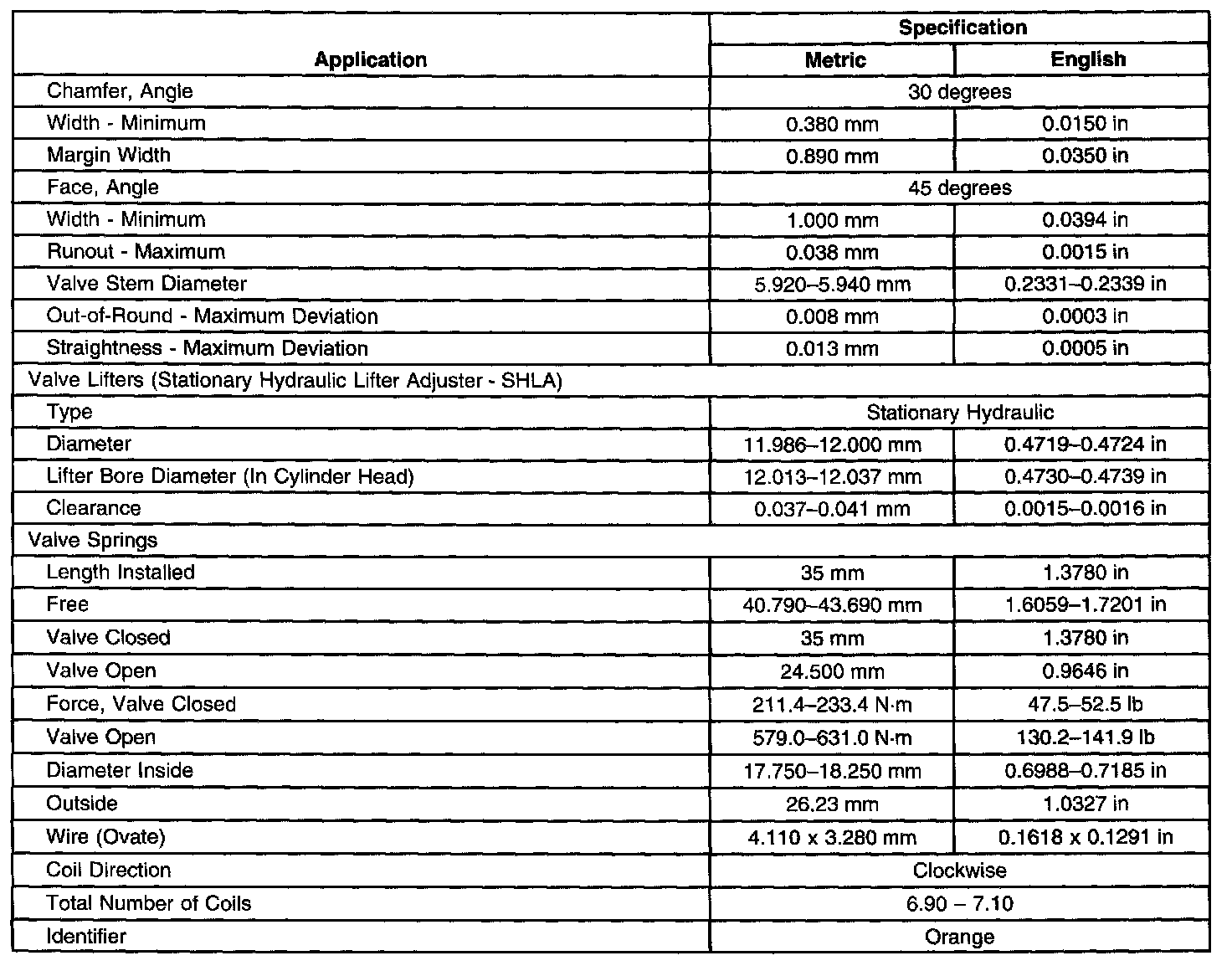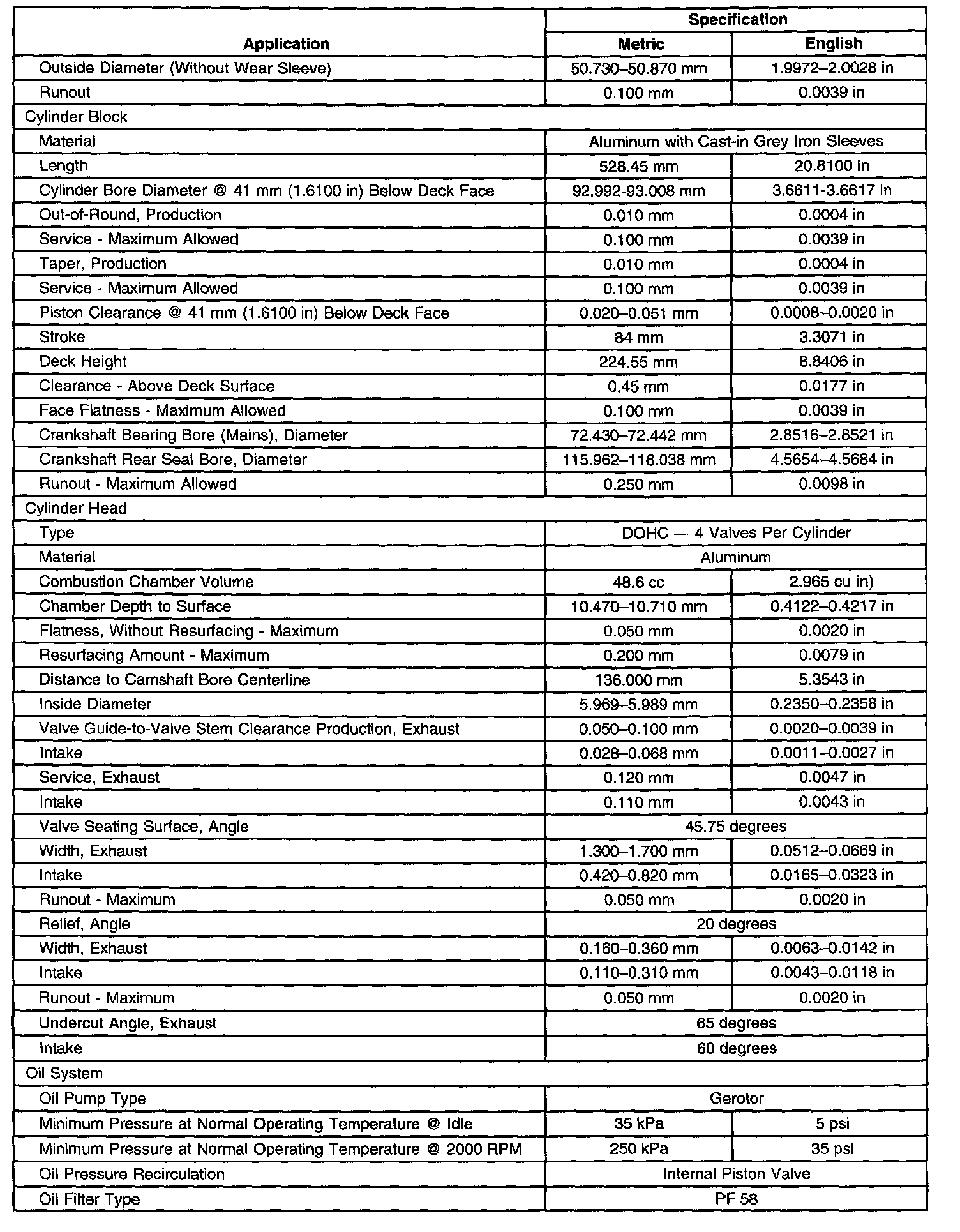 Engine Mechanical Specifications-Unit Repair