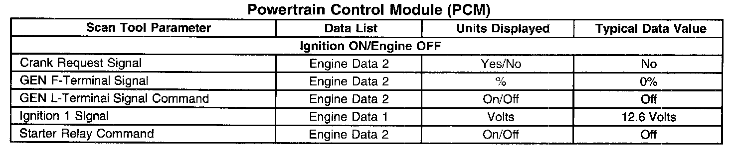 Scan Tool Data List - Powertrain Control Module (PCM)