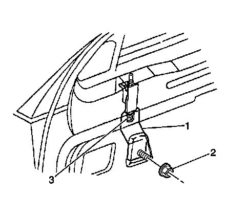 2. Insert a 2.6 cm (1 in) wide roll of masking tape (2) in the weatherstrip retainer assembly (3).