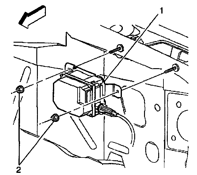 6. Remove the cruise control module bracket (2) from the cruise control module (1).