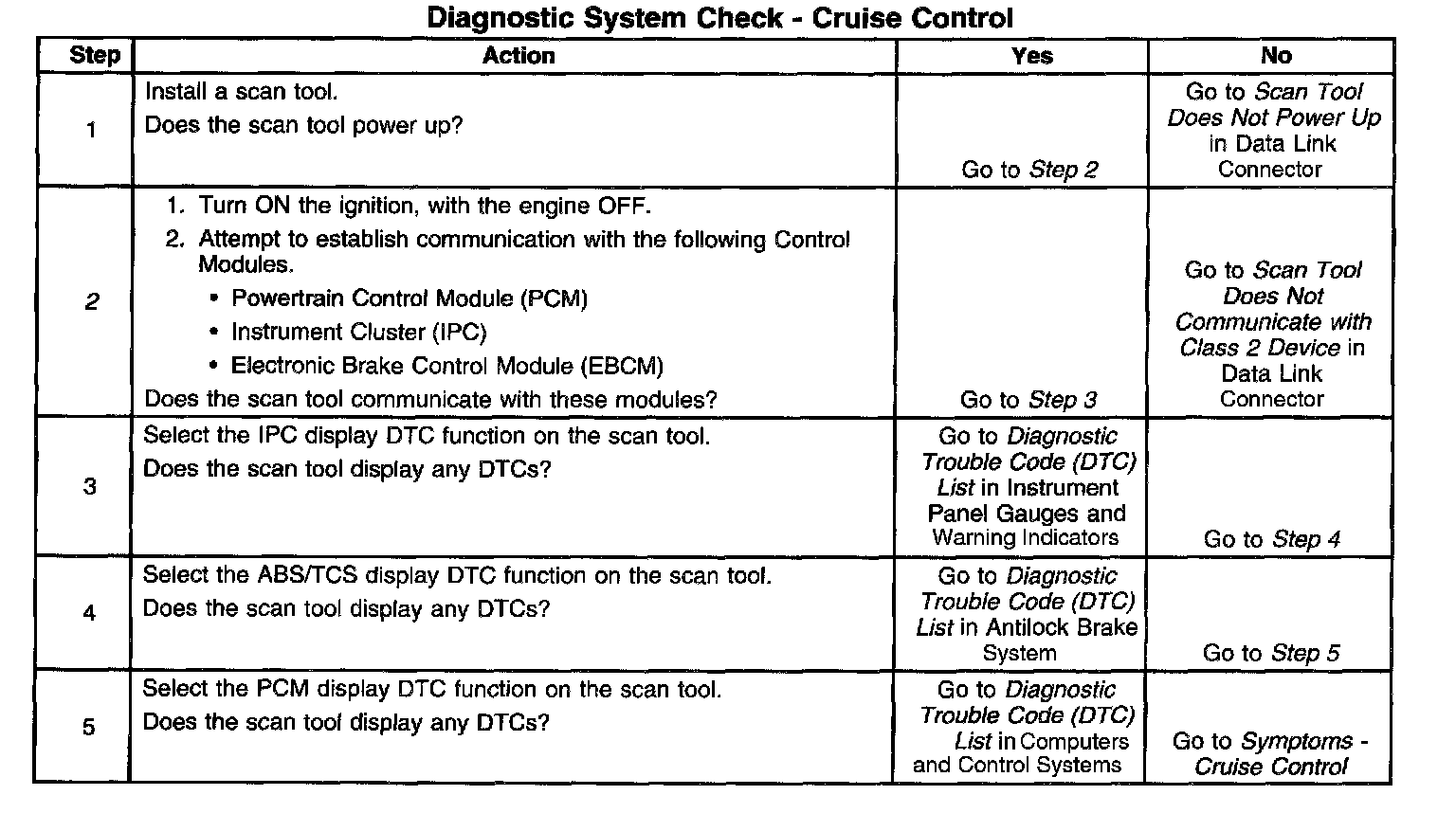 Diagnostic System Check - Cruise Control