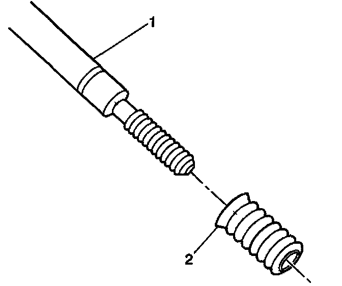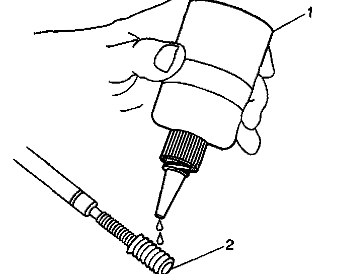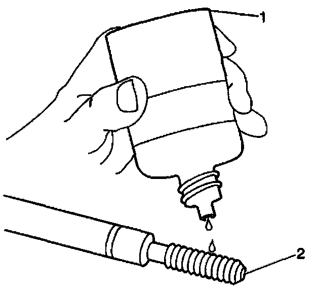 15. Apply threadlock sealant GM P/N 12345493, J 42385-109, LOCTITE 277 e1m(R) or equivalent (1) to the insert OD threads (2).