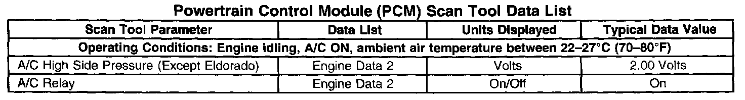 Powertrain Control Module (PCM) Scan Tool Data List:
