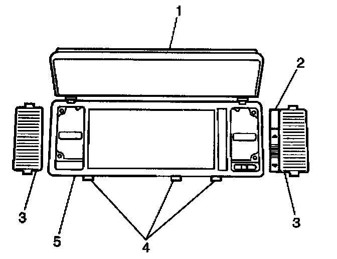 1. Open the vanity cover (1) and, using a thin-bladed tool, insert the edge of the tool under the lamp lens (3).