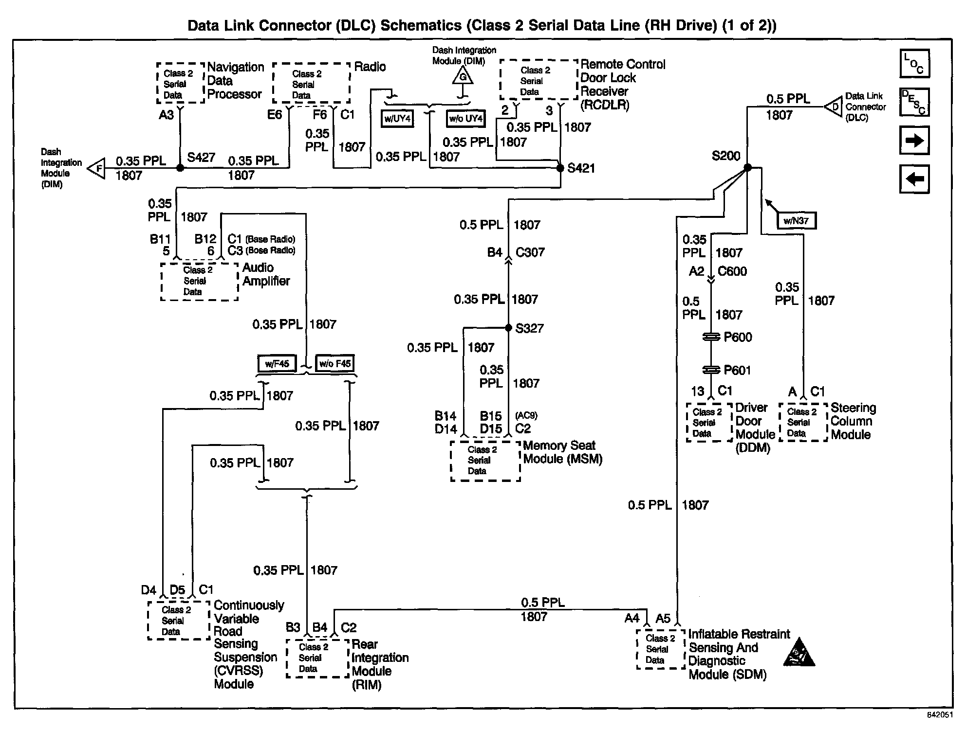 Data Link Connector (DLC) Schematics: Class 2 Serial Data Line (RH Drive) (Part 1 Of 2):
