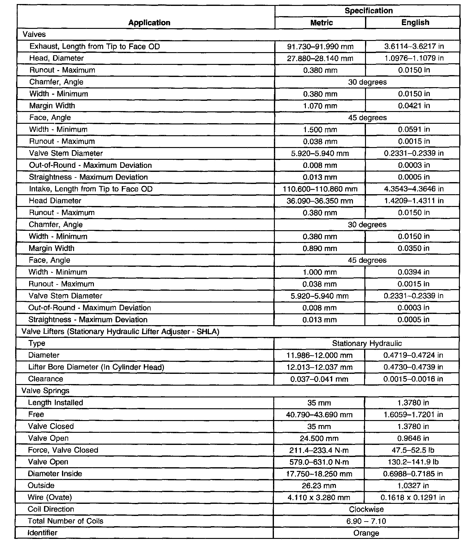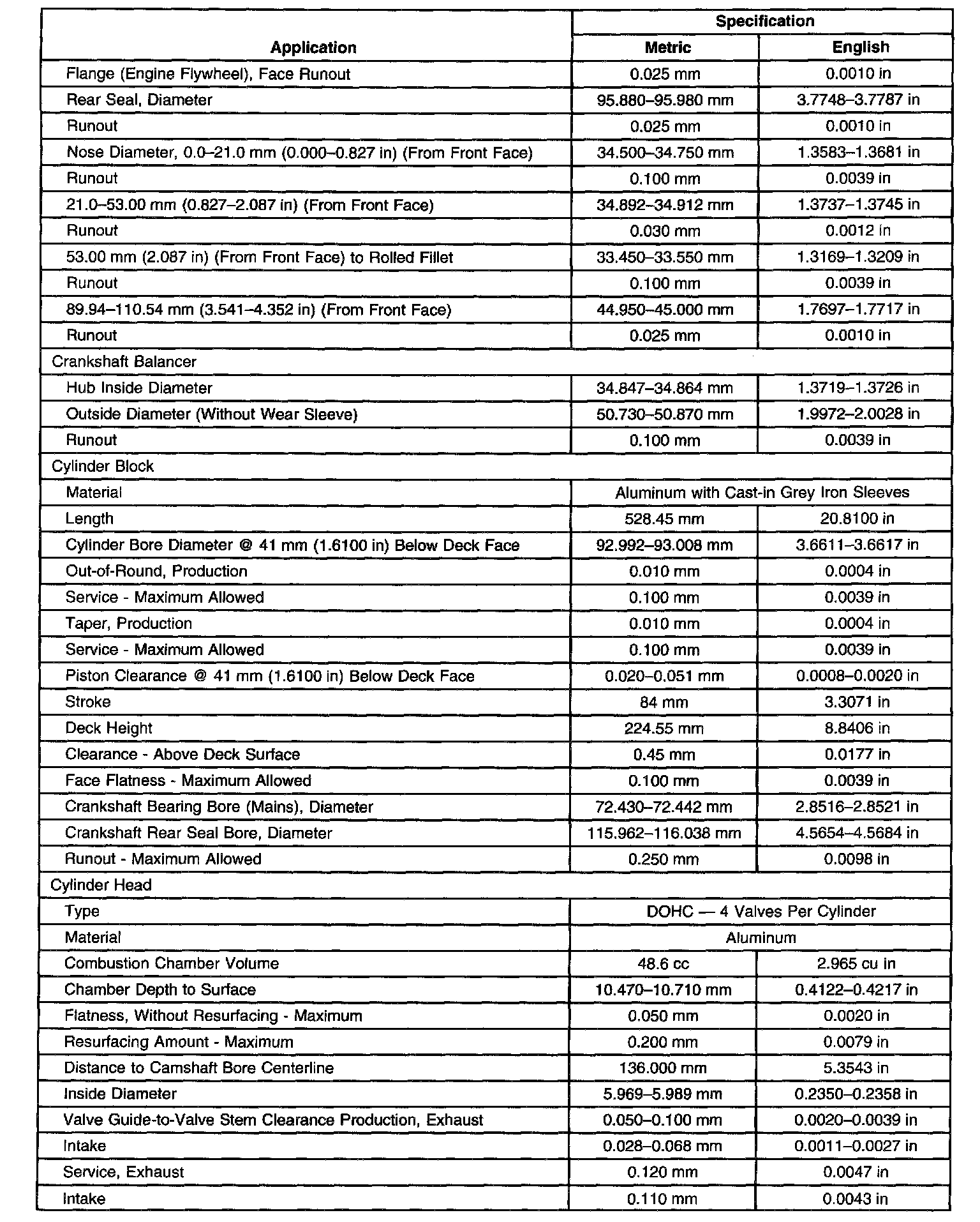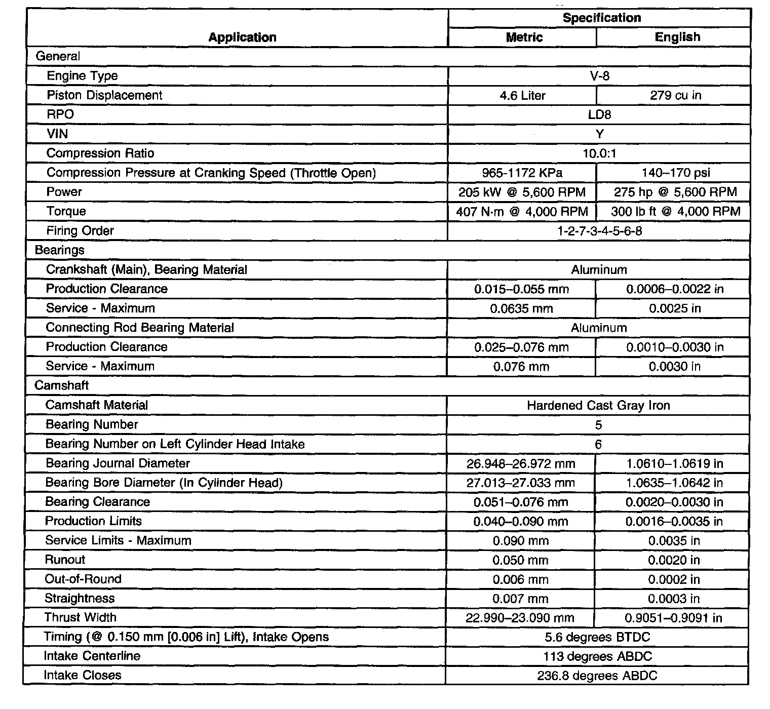 Engine Mechanical Specifications (LD8 (VIN Y)
