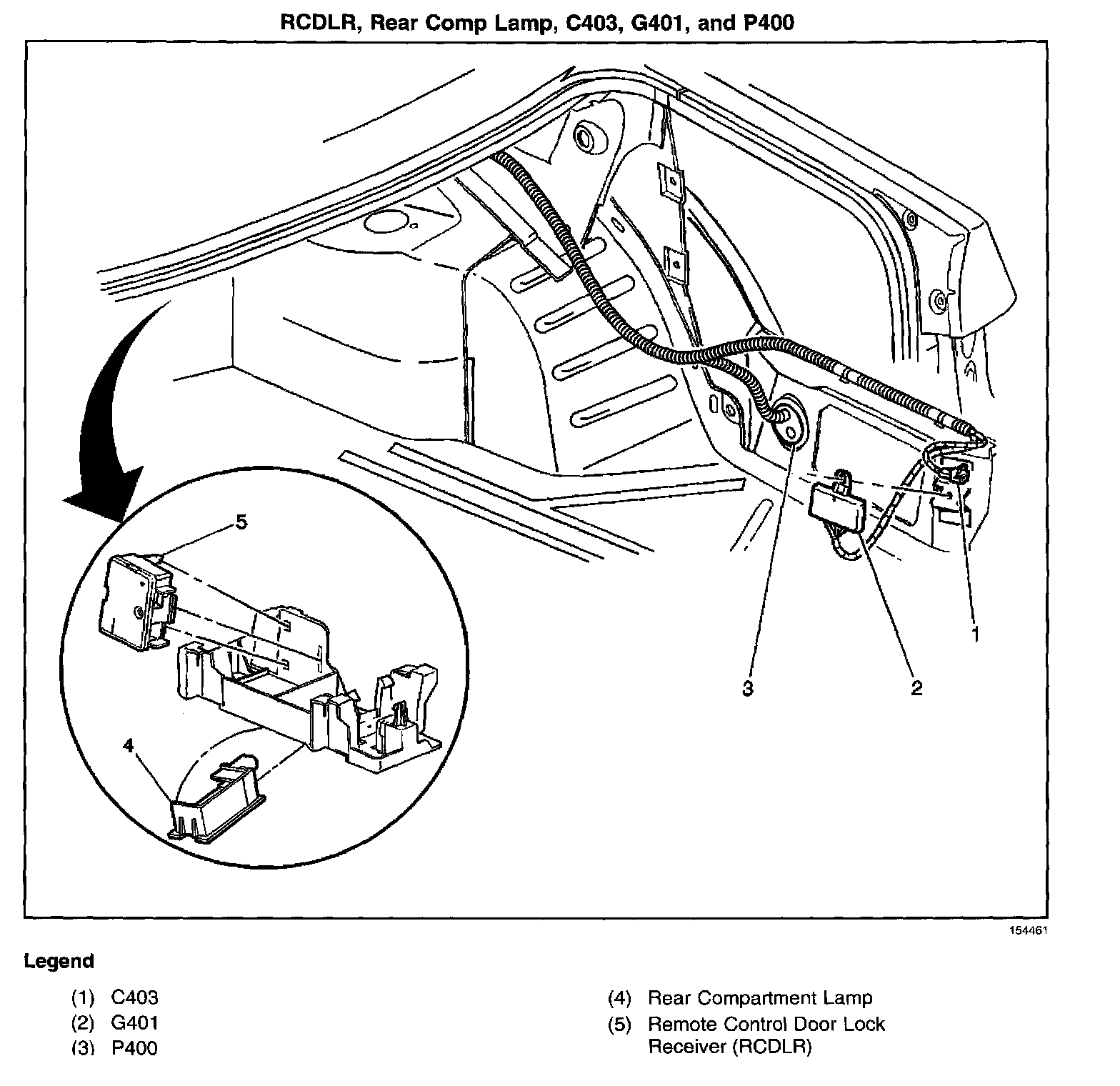 Center front of the rear compartment, under the package shelf, near the rear compartment lamp