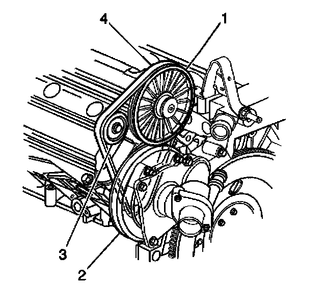6. Remove the water pump belt shield fasteners. Remove the water pump belt shield.