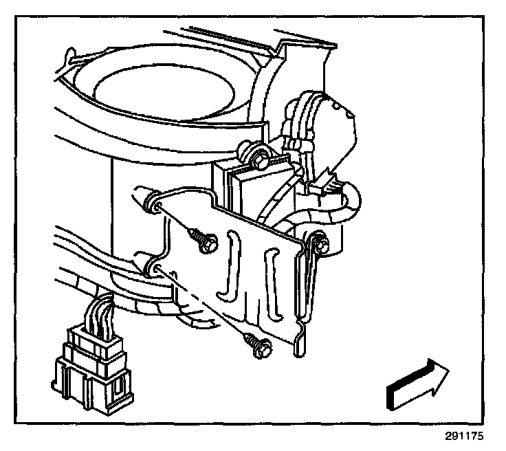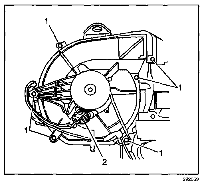 8. Remove the blower control module retaining fastener (1).