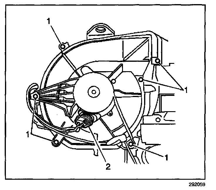 6. Disconnect the blower motor electrical connector (2).