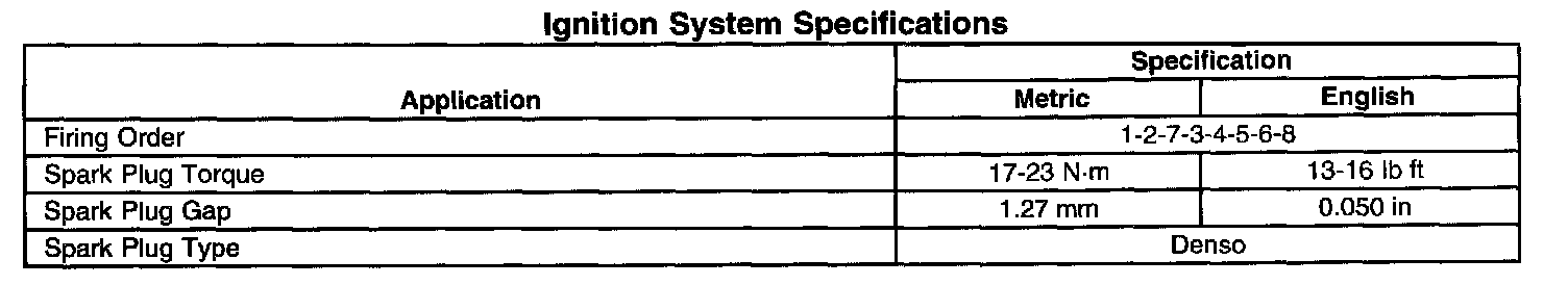 Ignition System Specifications: