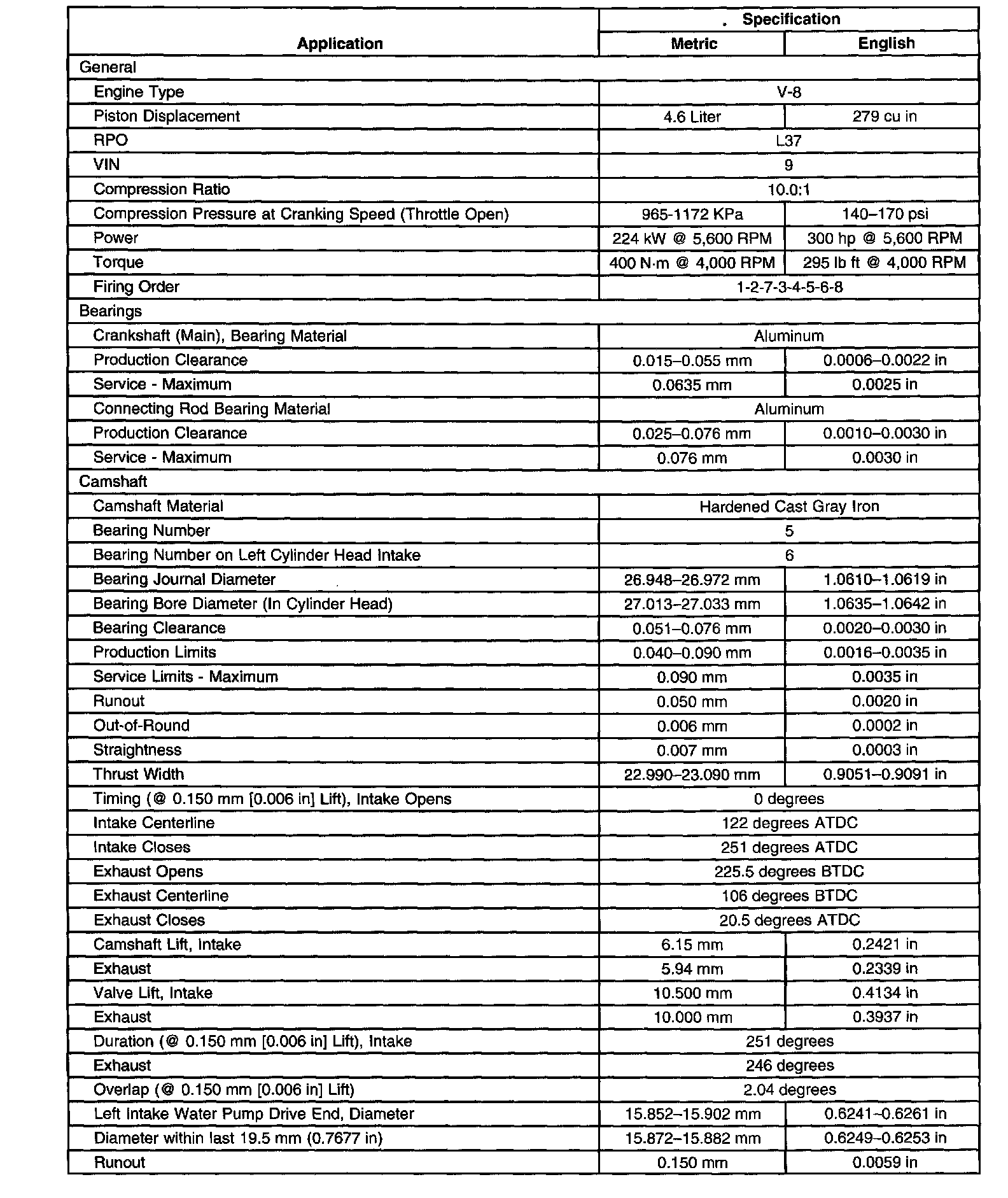Engine Mechanical Specifications (L37(VIN 9)