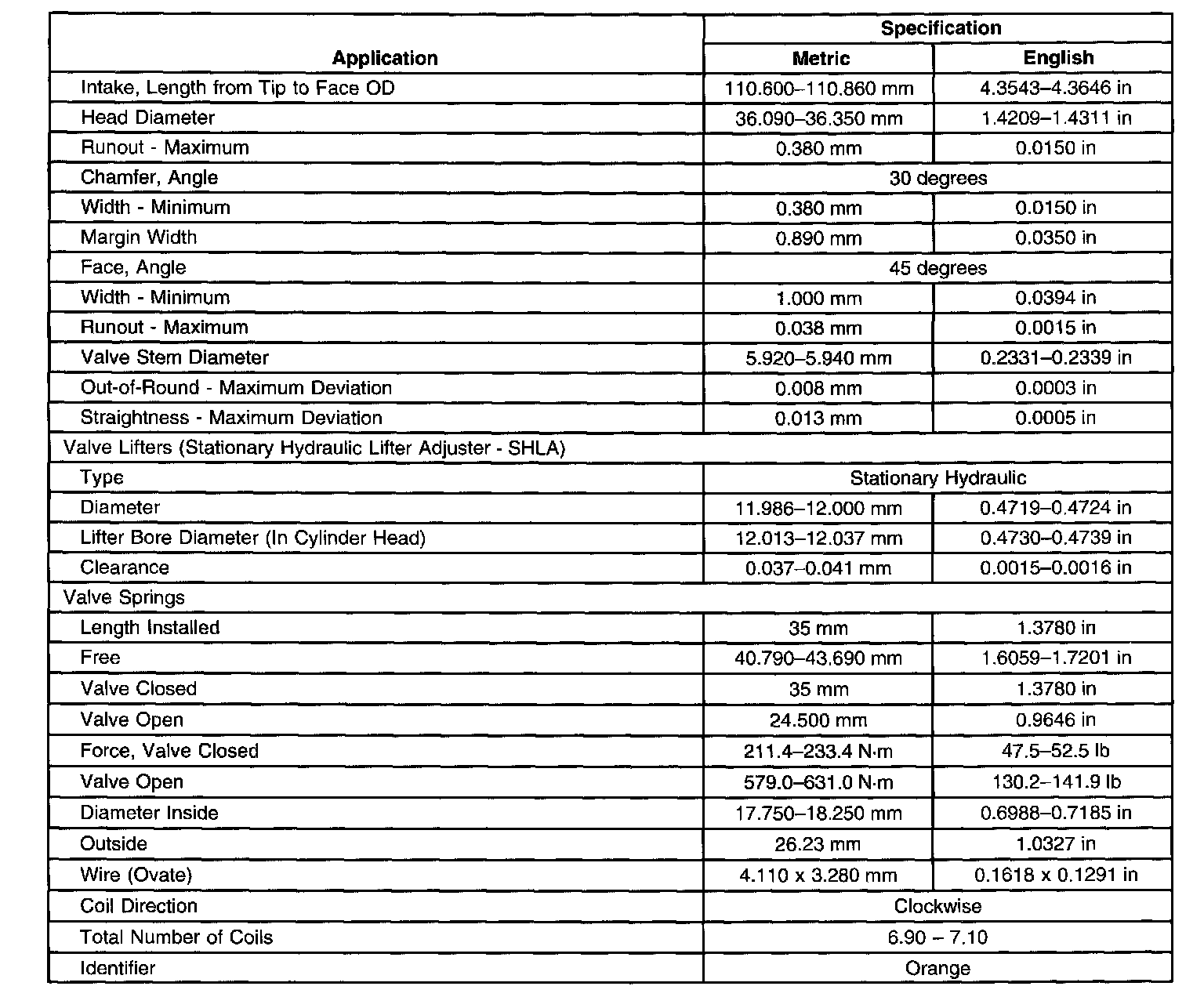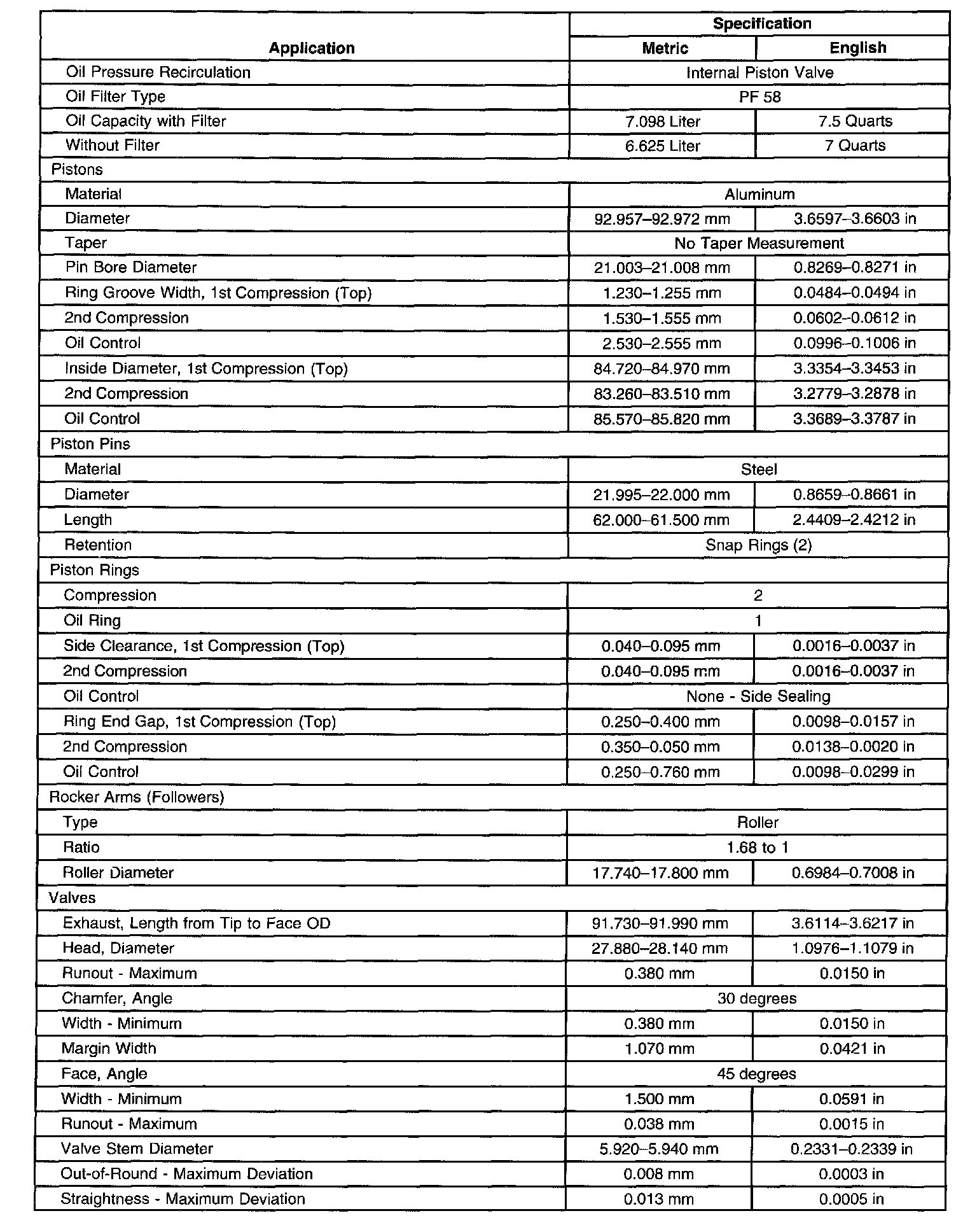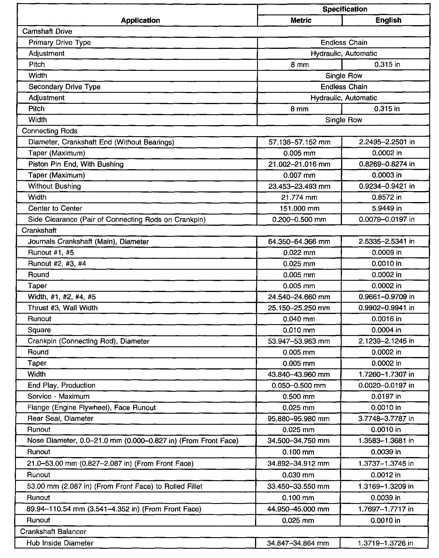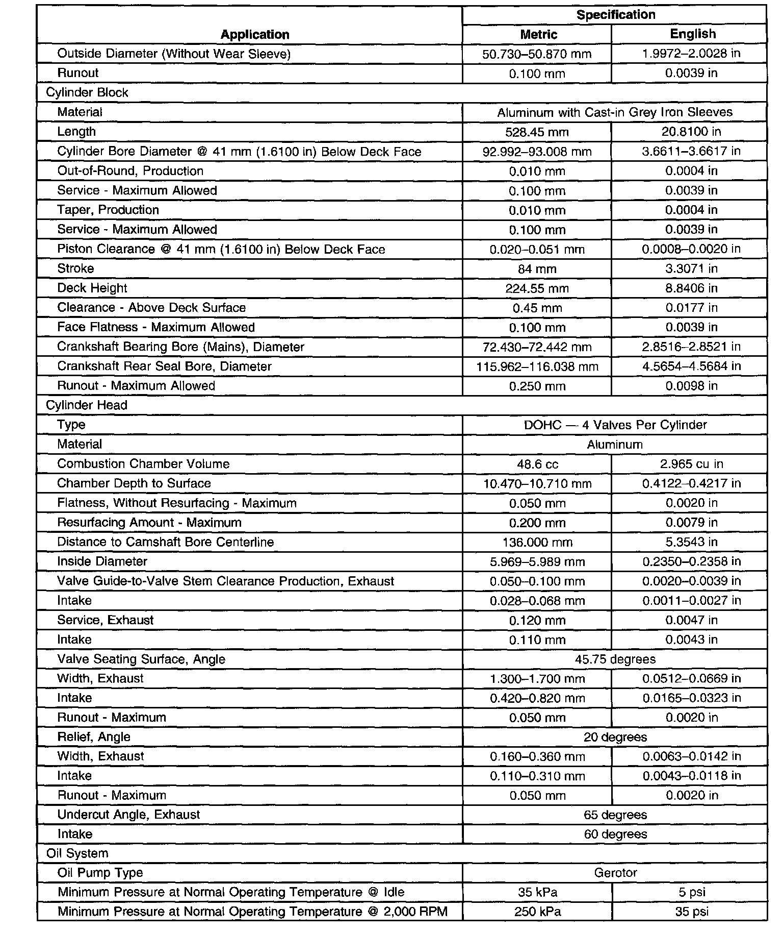 Engine Mechanical Specifications-Unit Repair