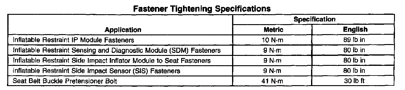 Fastener Tightening Specifications: