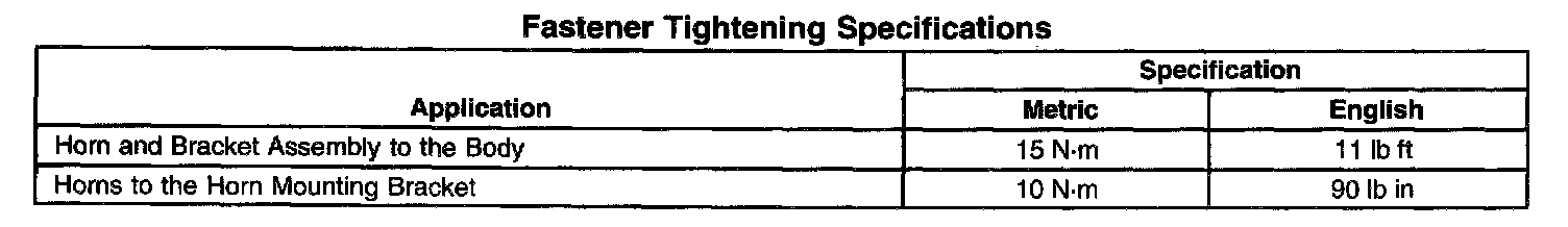 Fastener Tightening Specifications: