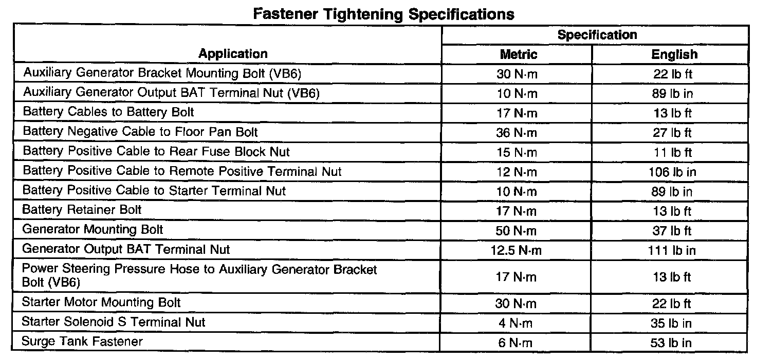 Fastener Tightening Specifications: