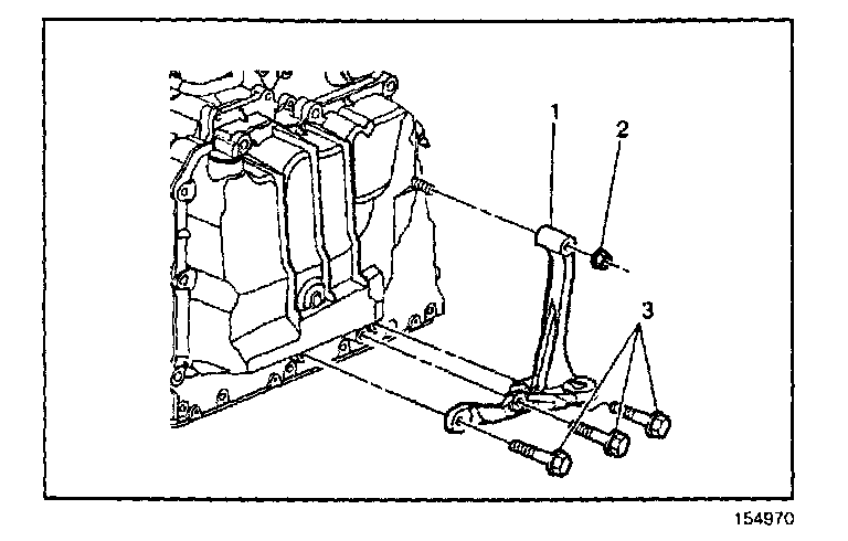 3. Install the transmission mount bracket mounting bolts (3) and nut (2).