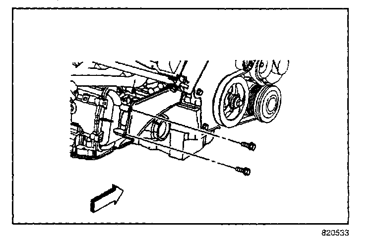 9. Install the bolts securing the front transaxle brace to the transaxle.