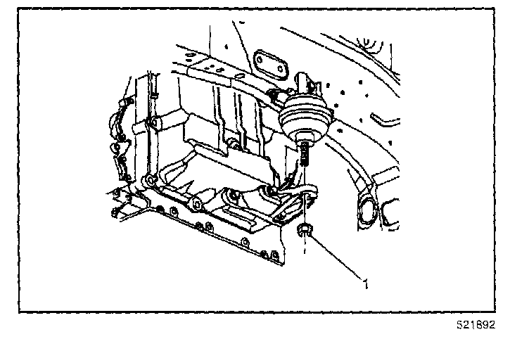 10. Raise the transaxle and install the nut (1) securing the transaxle mount to the transaxle mount bracket.
