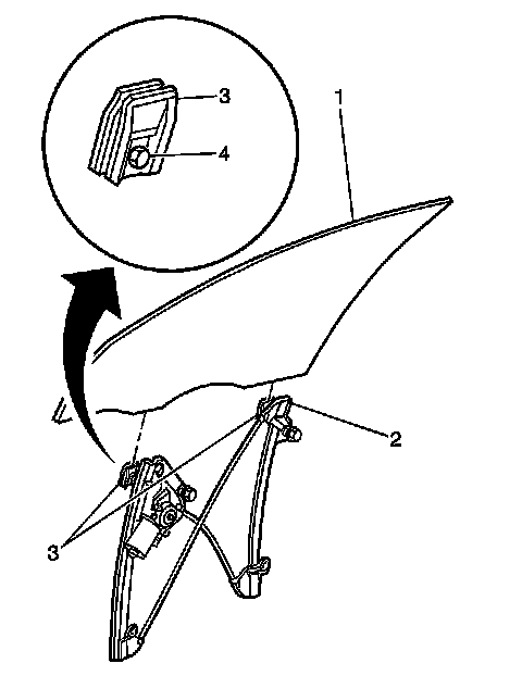 Important: Ensure that the rubber insulators are properly attached to the window regulator clamps.