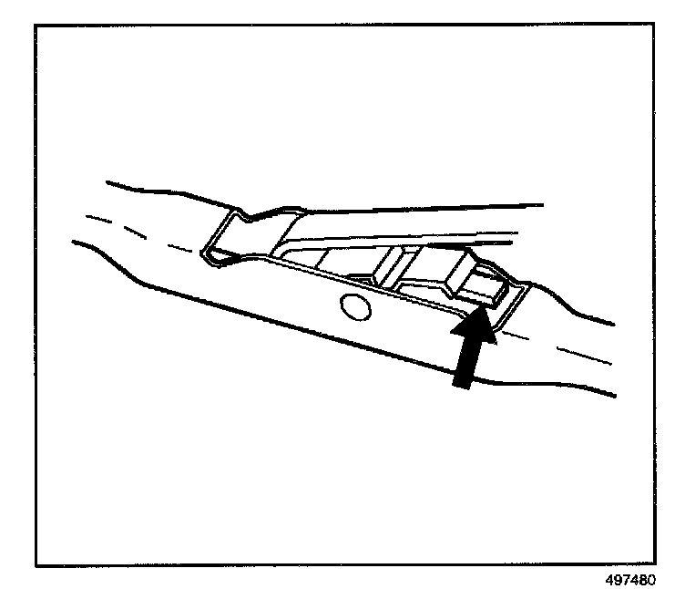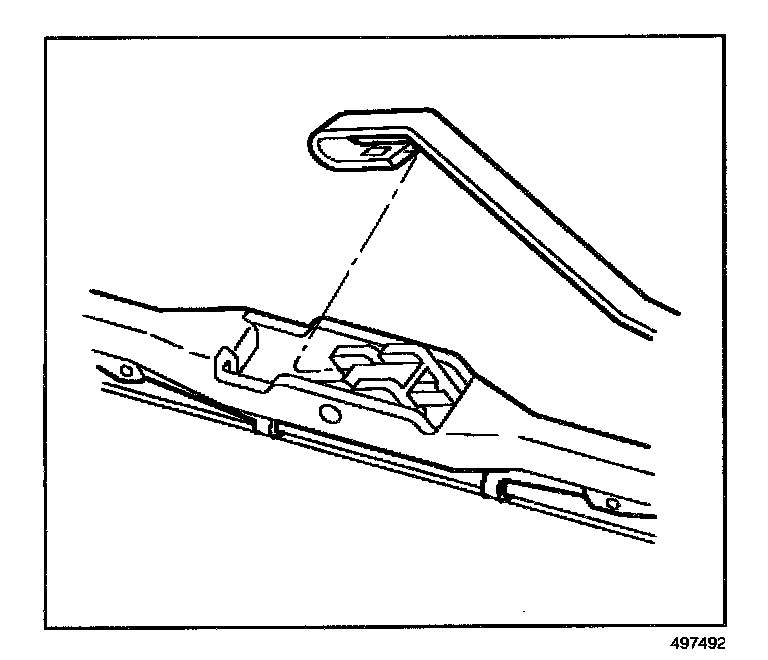 REMOVAL PROCEDURE1. Push in the button of the wiper blade clip and remove the wiper blade from the inside radius of the wiper arm.