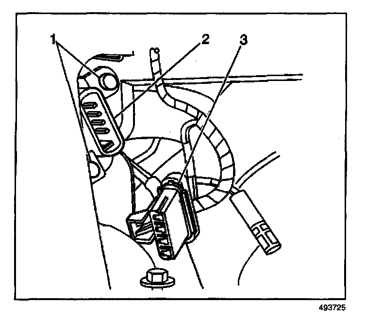 3. Connect the electrical connector (3) to the auxiliary blower motor resistor (2).